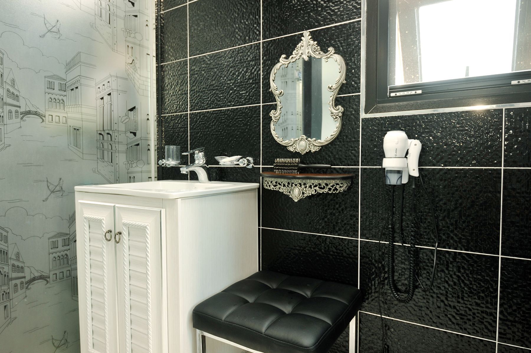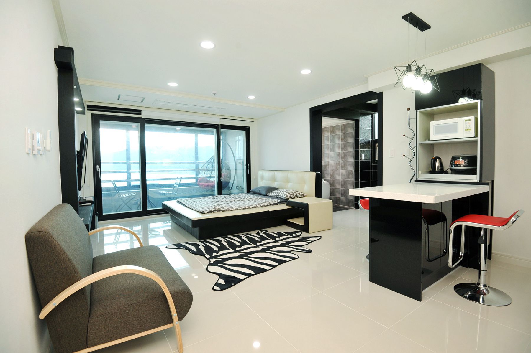 전 객실은 블랙&화이트 색상으로 모던하고 심플한 디자인으로 인테리어가 꾸며져 있습니다.