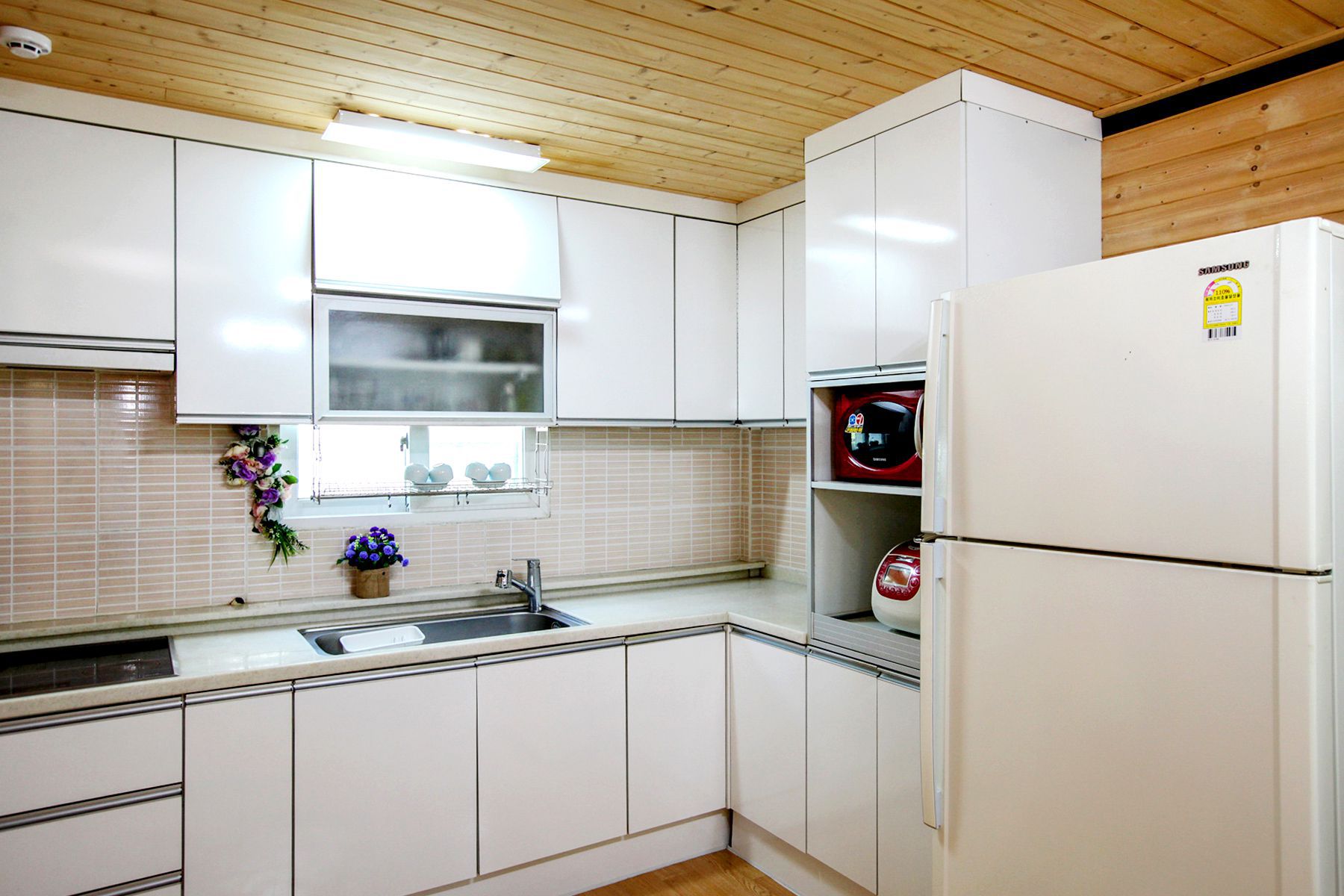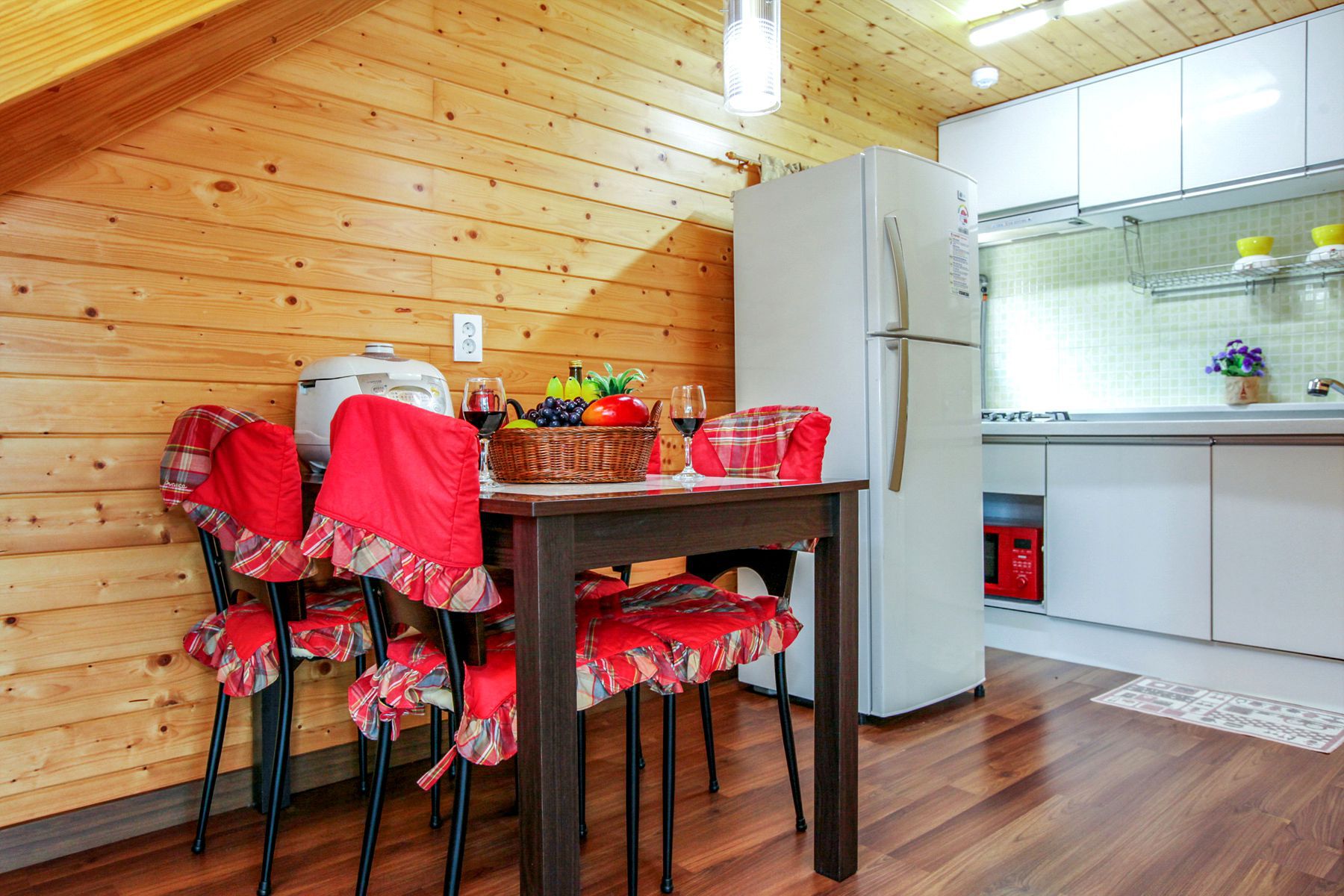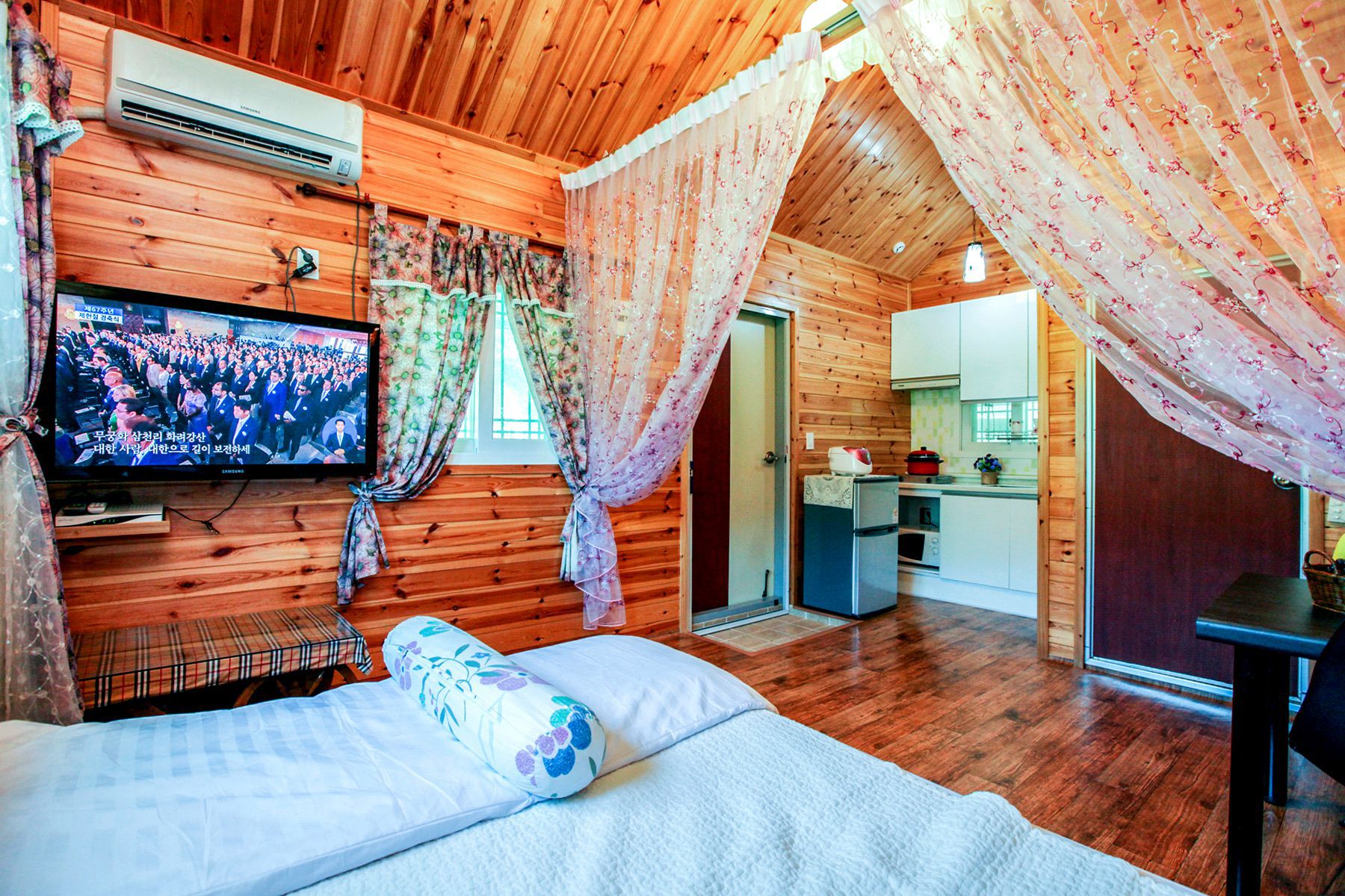 각 객실에는 벽걸이tv,전자렌지,냉장고,전기밥솥,식기류,에어컨 등이 구비되어 있고