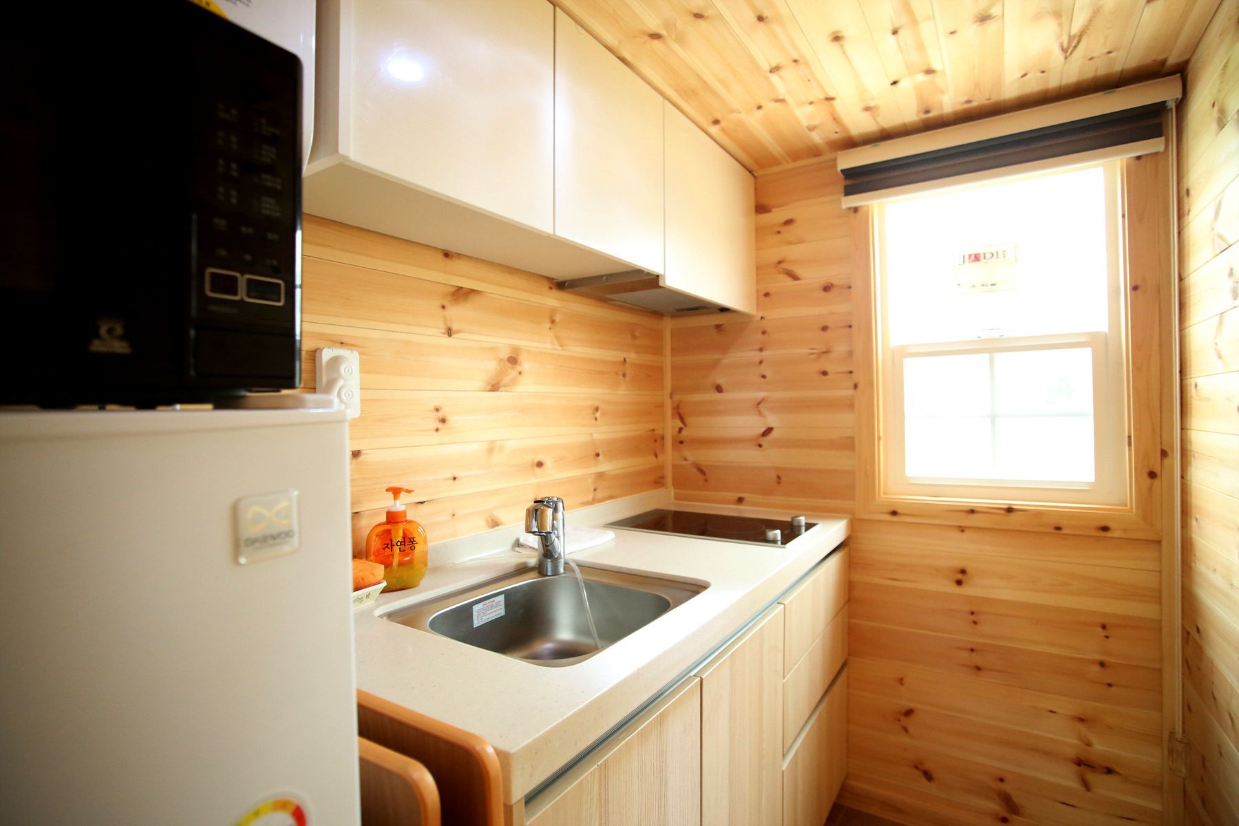 객실의 주방들은 깔끔하고 위생적으로 관리되어져 있고 정리정돈도 잘 되어 있어 처음 방문하시는 분들도 꺼내쓰기 쉽게 하고 있습니다.