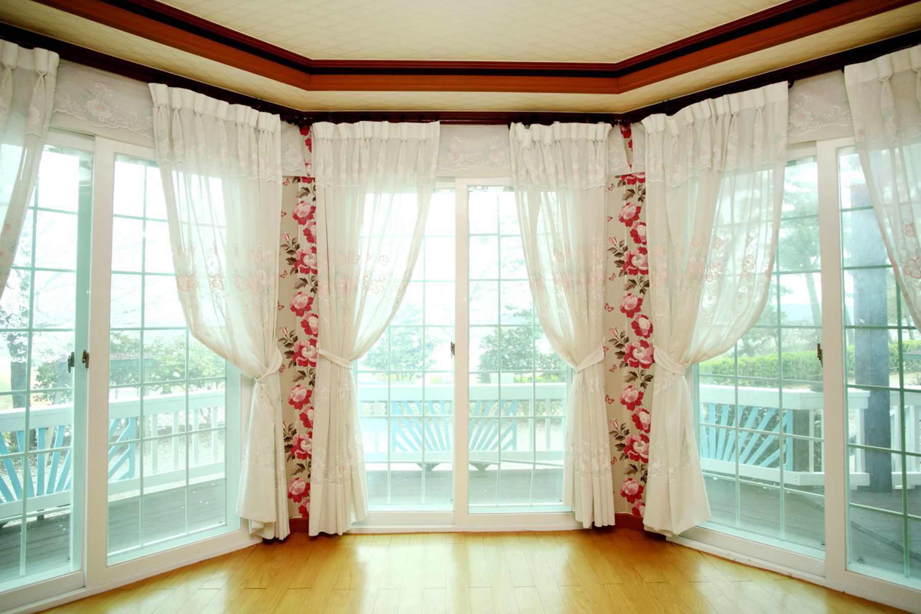 나폴나폴 커튼자락이 흩날리면서 안면도의 바닷바람이 창으로 들어올때