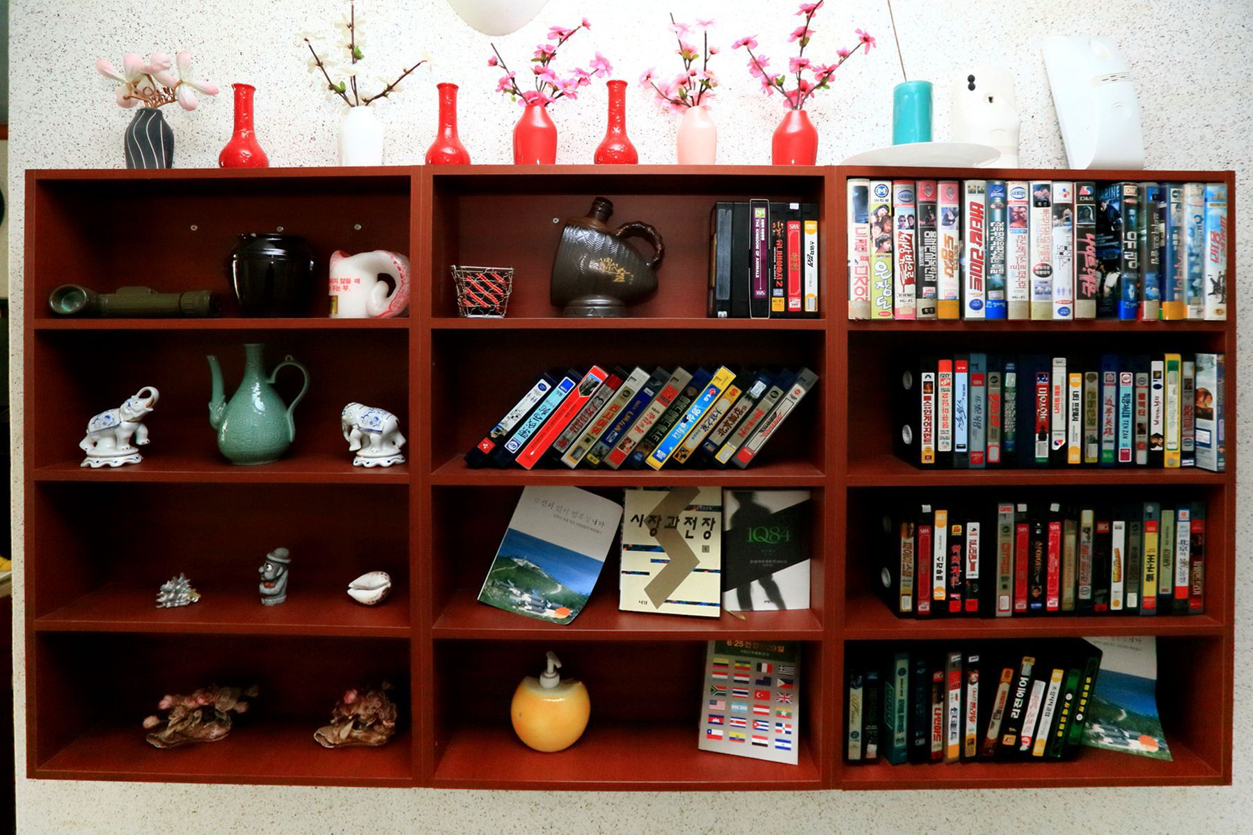 로비 한켠에는 옛 추억의 향수를 느낄 수 있는 다양한 비디오테이프들이 가지런히 놓여있 테이프 구경하는 재미를 느낄 수 있으며,