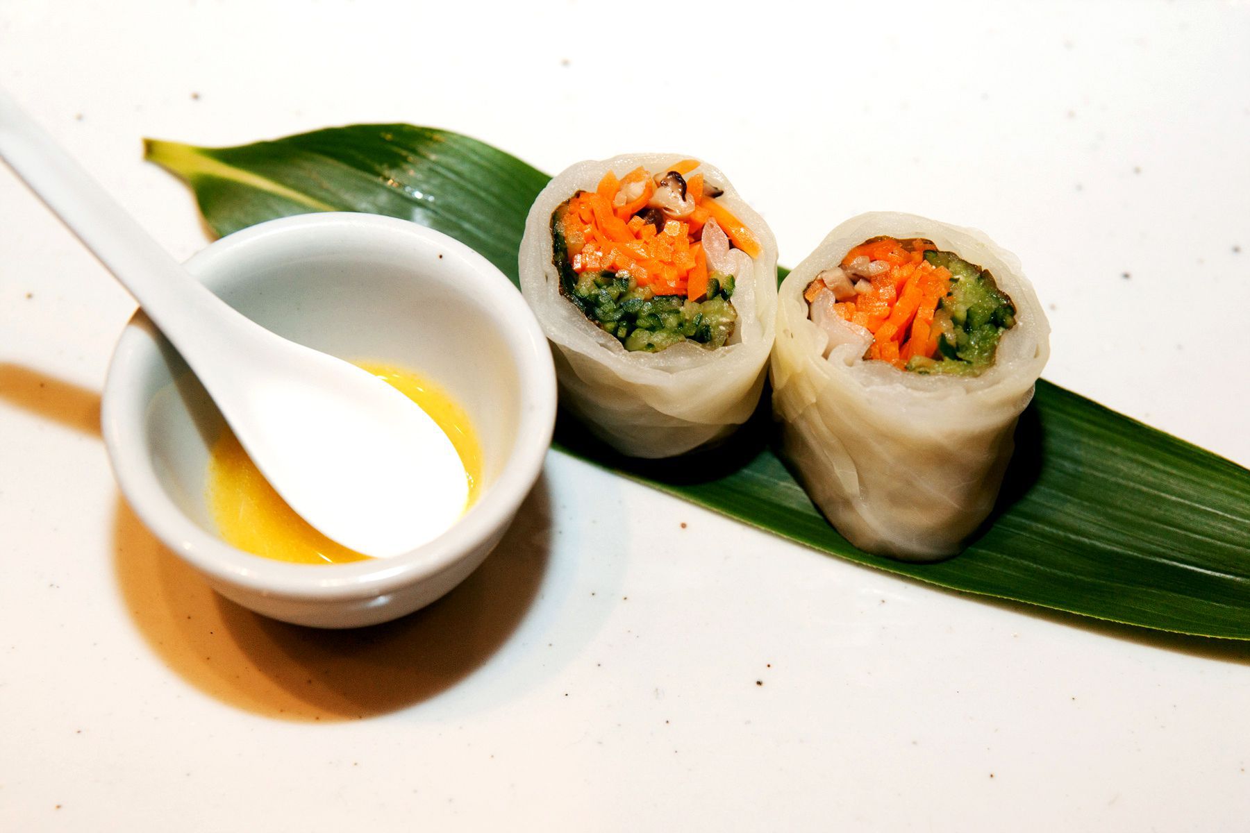 구성으로는 계절죽 밀싸말이와 겨자소스 오리구이,야채샐러드,해패리,생우냉채,탕류,보쌈,증편,춘권튀김,장어강정,