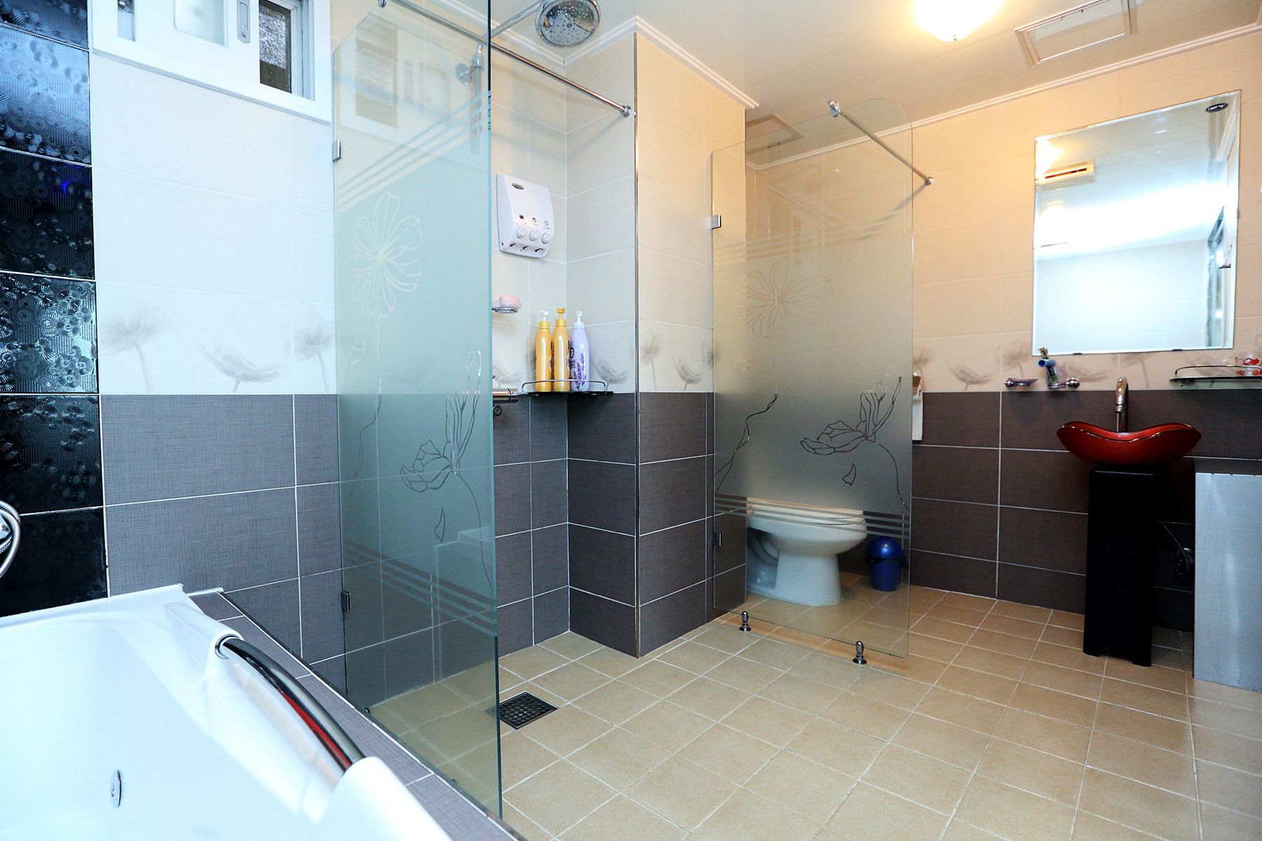 왠만한 방못지 않은 크기로 눈길을 사로잡고 있는 욕실은 월풀도 있어 여행에서 지친 심신의 피로를 풀기에 아주 좋습니다.