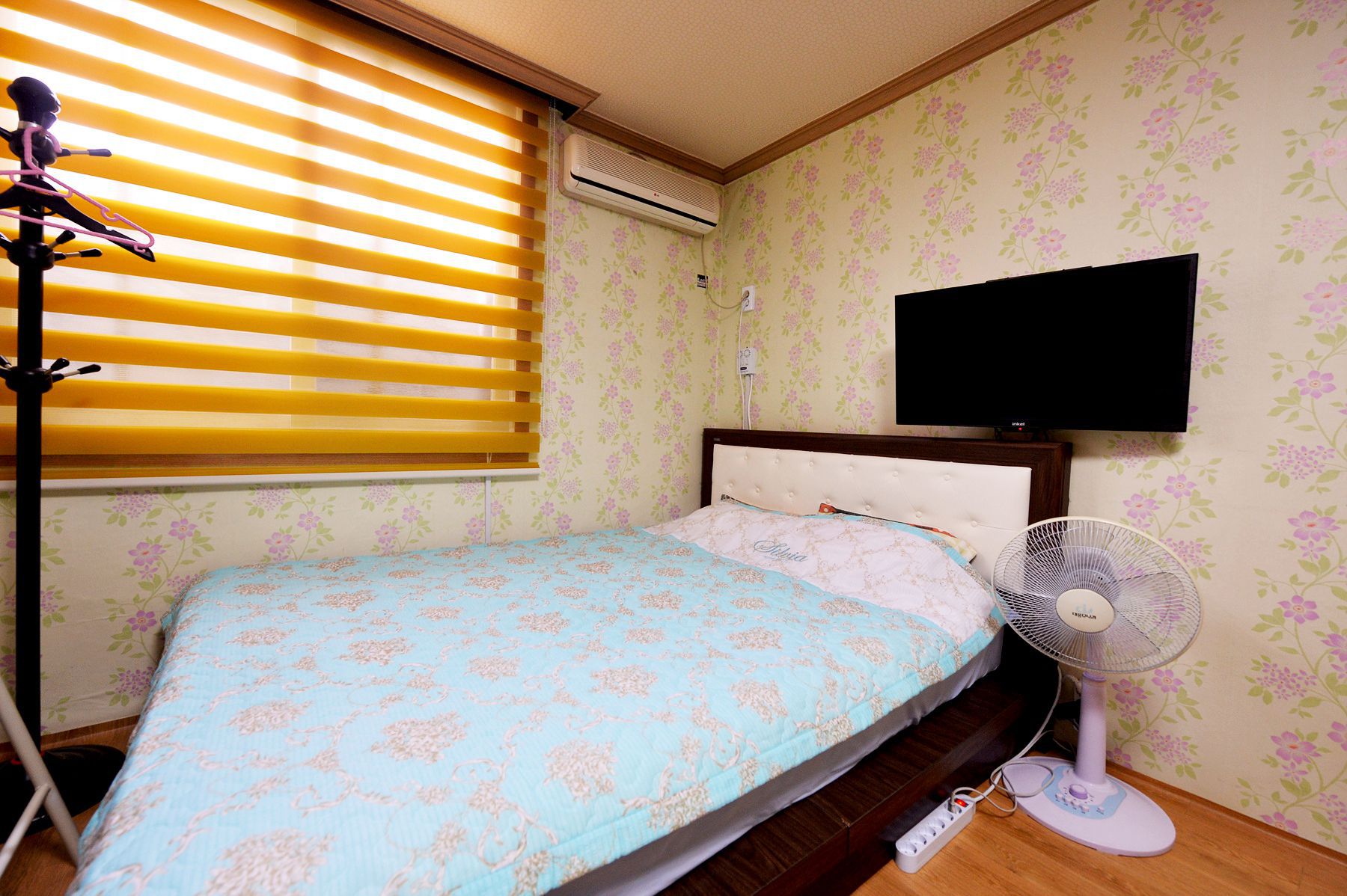 모든 객실에 마련된 에어컨,tv,선풍기,냉장고, 멀티플러그등