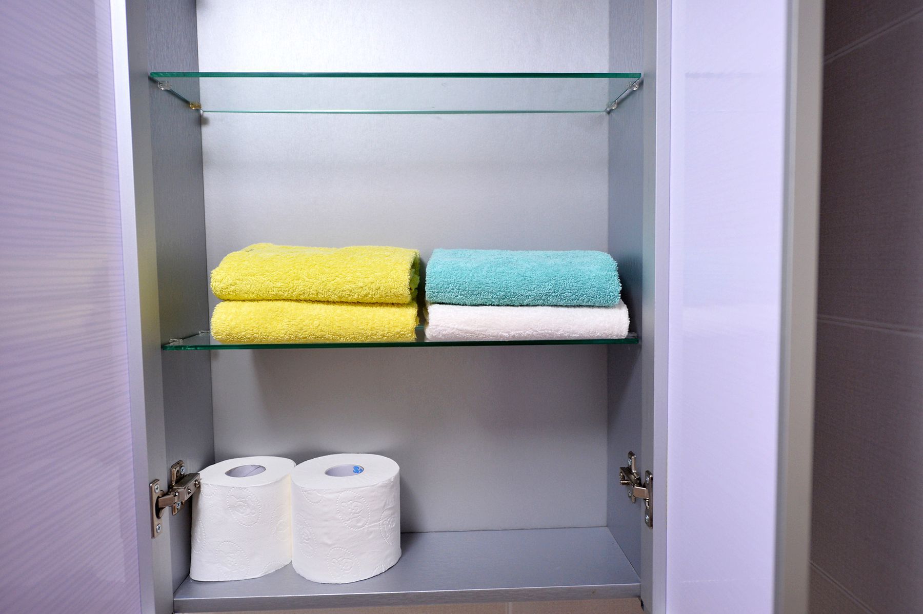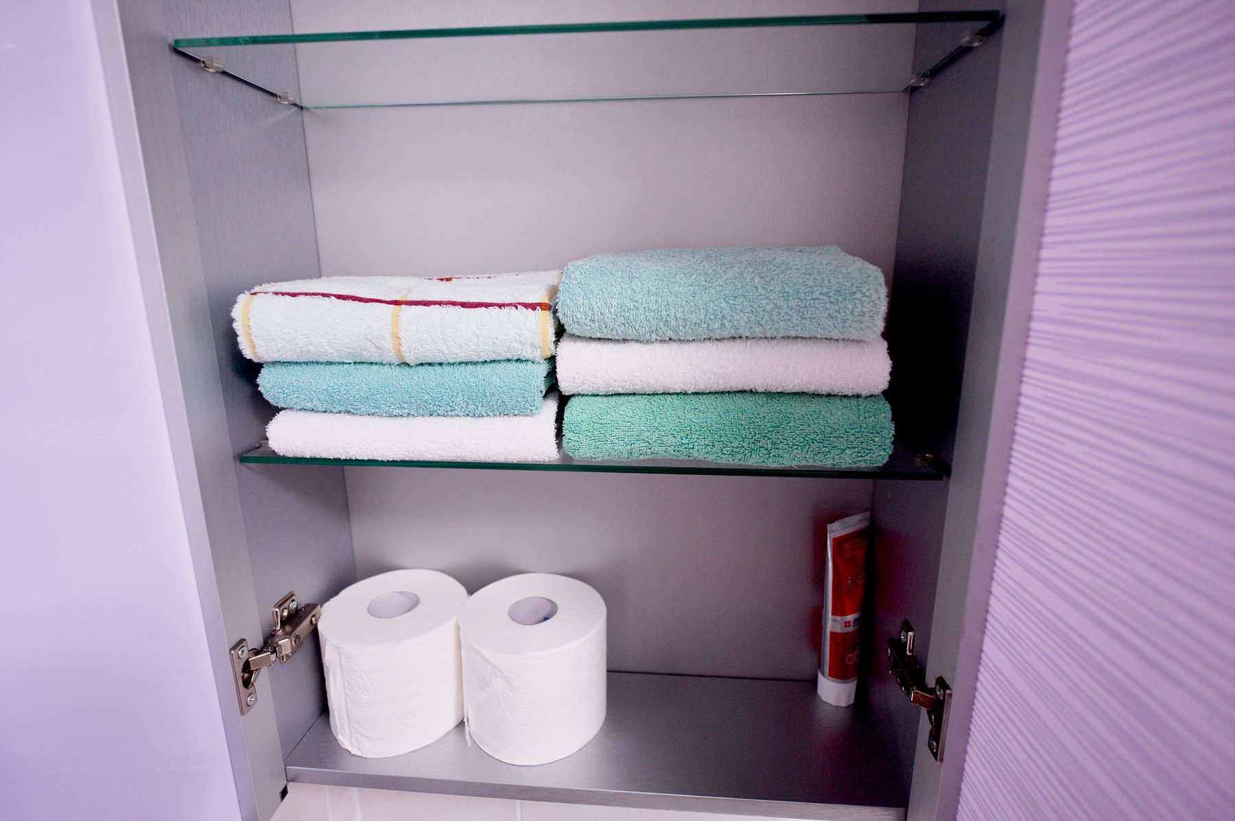 물기하나 없이 깨끗한 욕실은 다양한 욕실용품이 구비되어 있어서