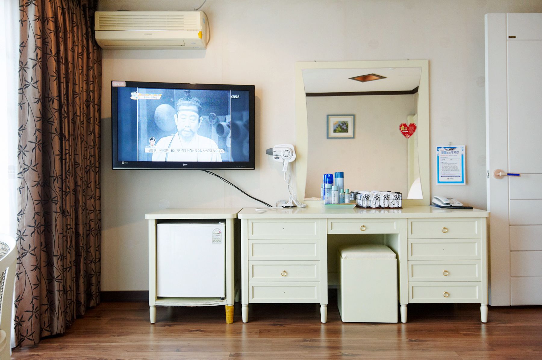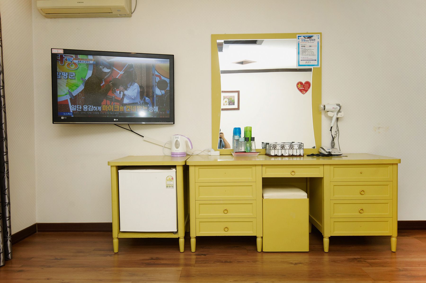 벽걸이tv,냉장고,커피포트,헤어드라이기,청결한 가운과 수건이 준비되어 있고