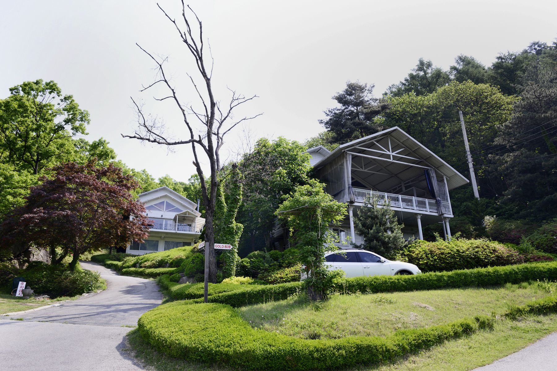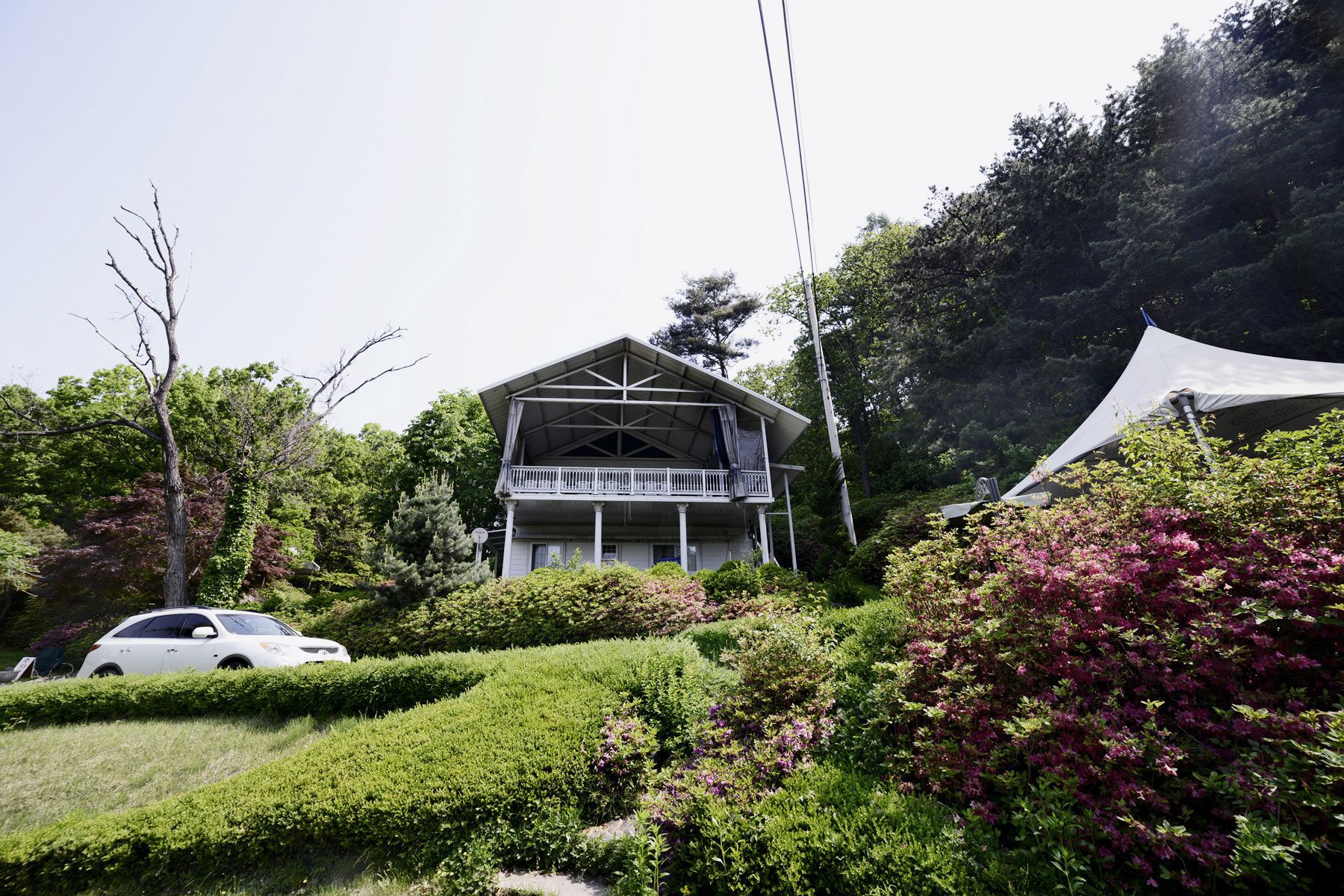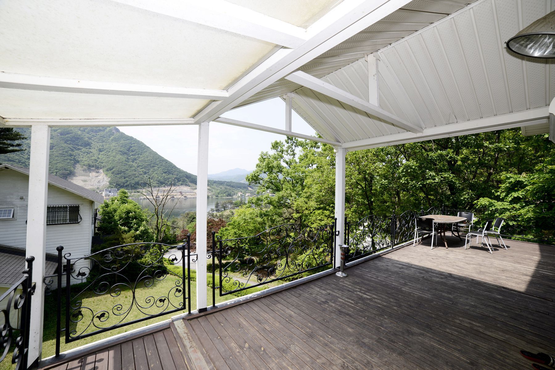 펜션앞 정원에 아주 고급스럽고 우아하면서 클래식한 분위기의 청평호반과