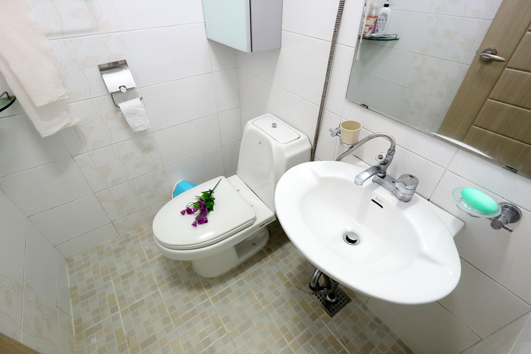 쾌적한 환경에 바스,린스,샴푸,비누등 고루 구비해두어 간단한 여행을