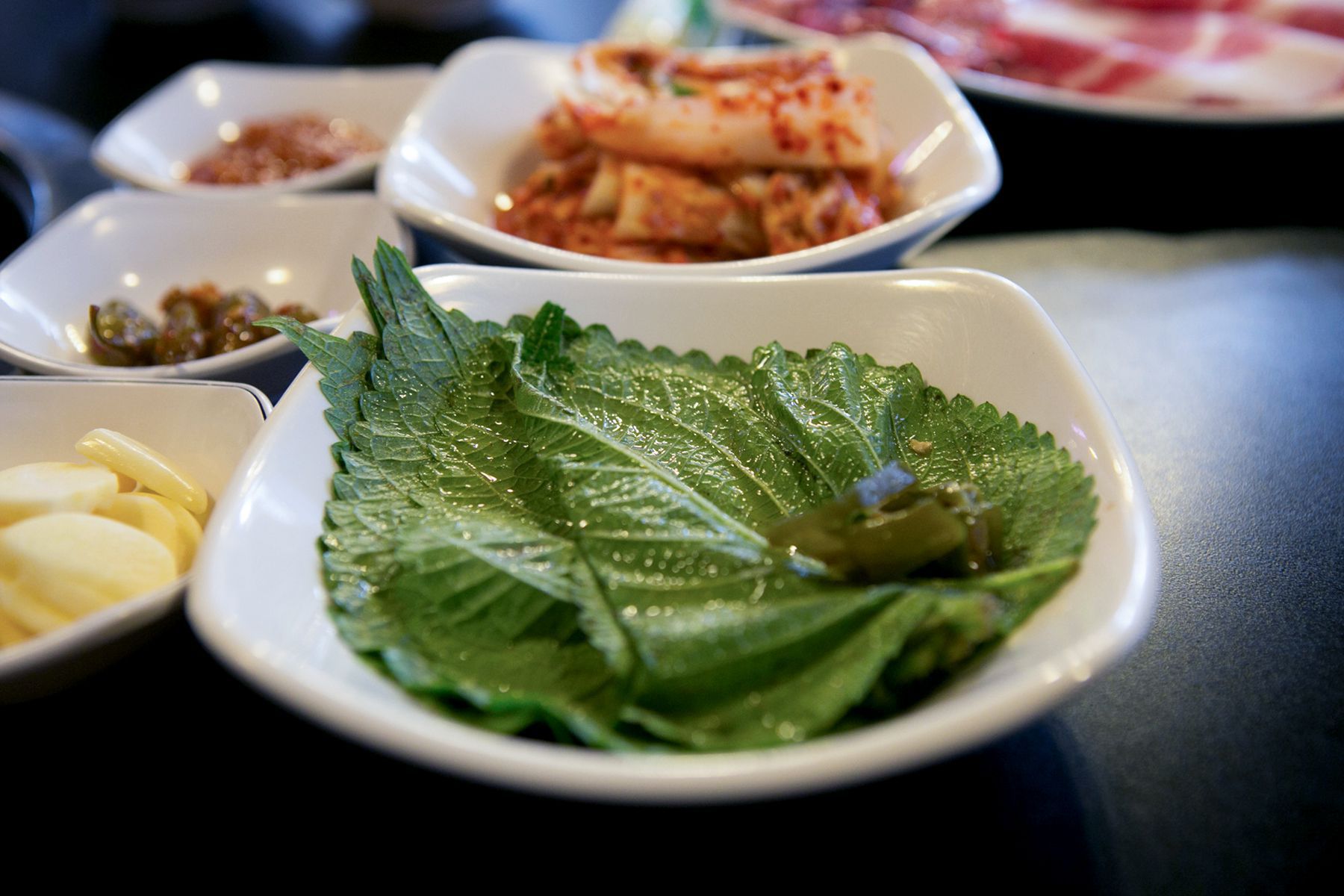 꼬기파파에서는 고기는 딱 세번만 뒤집으시며 구워주시고 잘익은 고기는 앞접시에 깻잎, 파절임, 고기순으로 쌈을 싸서 드시면