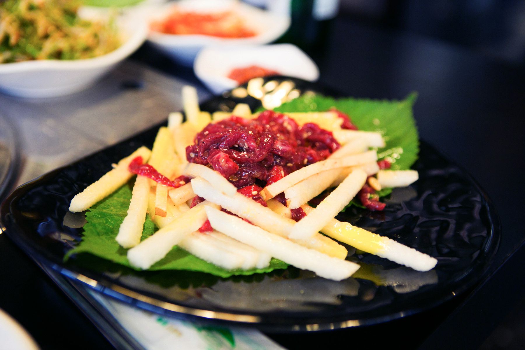 아삭하고 달달한 배가 함께 나와 신선한 육회가 더욱 달게 느껴지는듯 합니다.