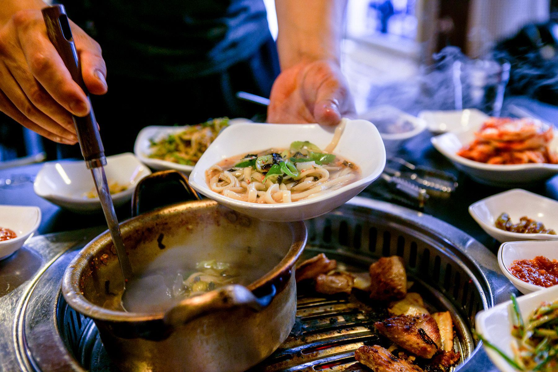 고기불판에서 바로 끓여 먹어 마지막까지 뜨끈하게 얼큰함과 매콤함을 즐기실 수 있습니다!