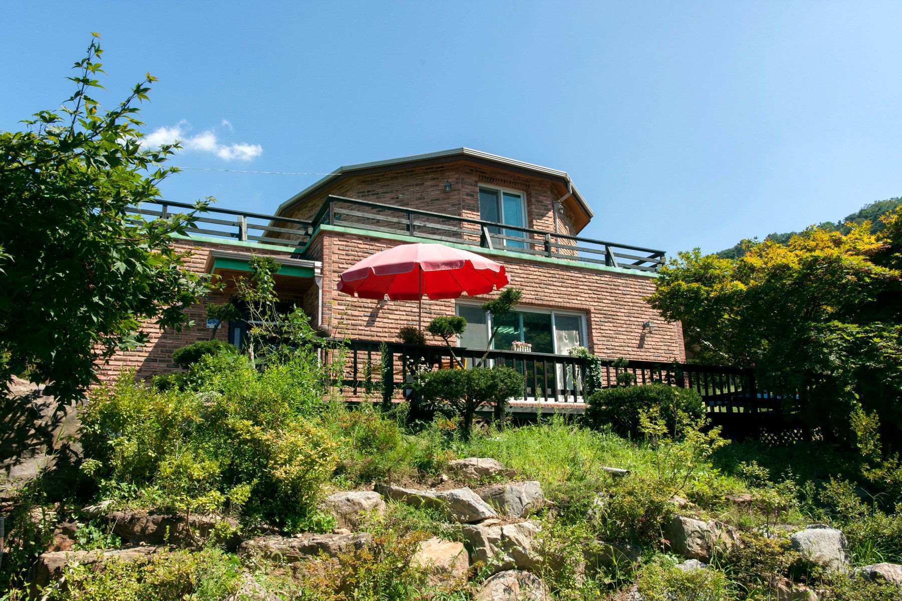 넓은 정원은 보는 것만으로도 편안함이 느껴지며 아름다운 풍경에 둘러쌓인 조용한 펜션은