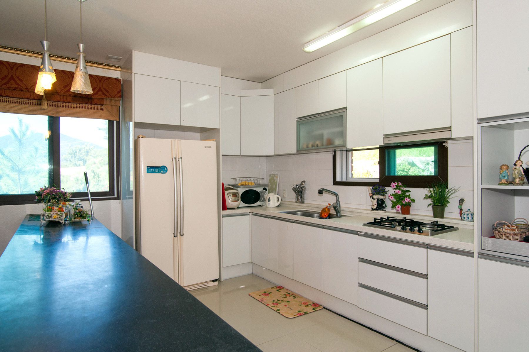 청결과 위생을 기본으로 정리정돈도 깔끔하게 되어 있는 주방은 아일랜드 식탁으로 모던하면서 편안한 분위기를 연출하고 있습니다.