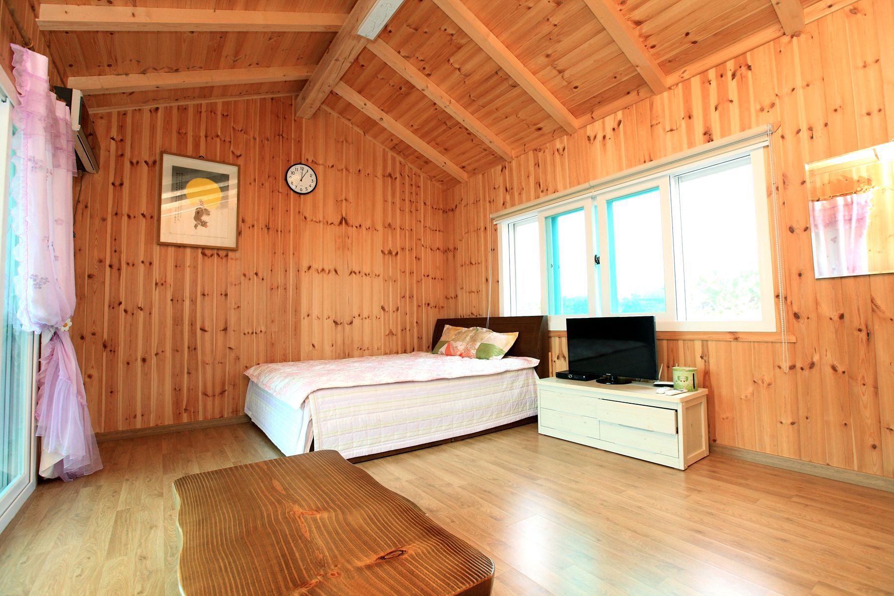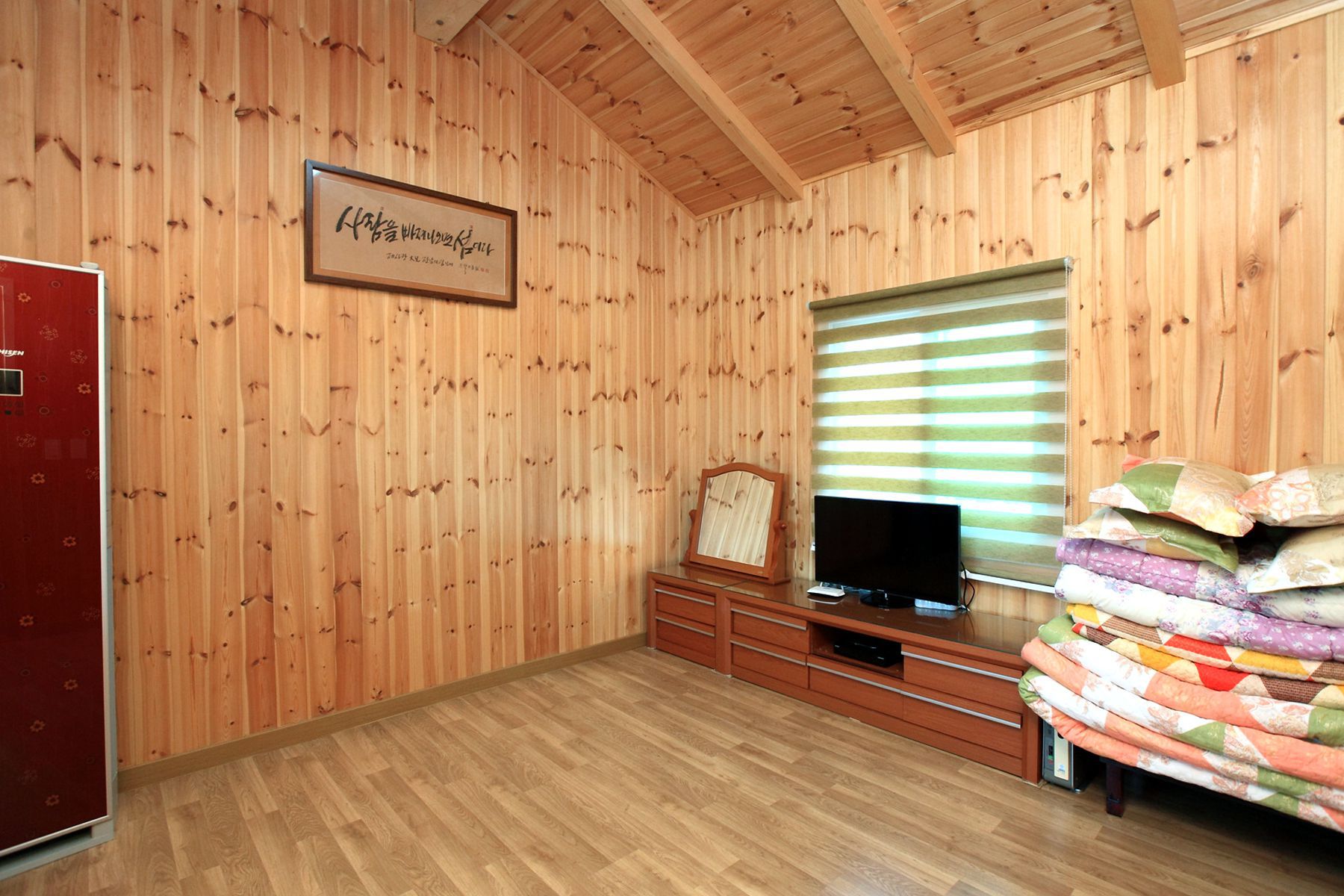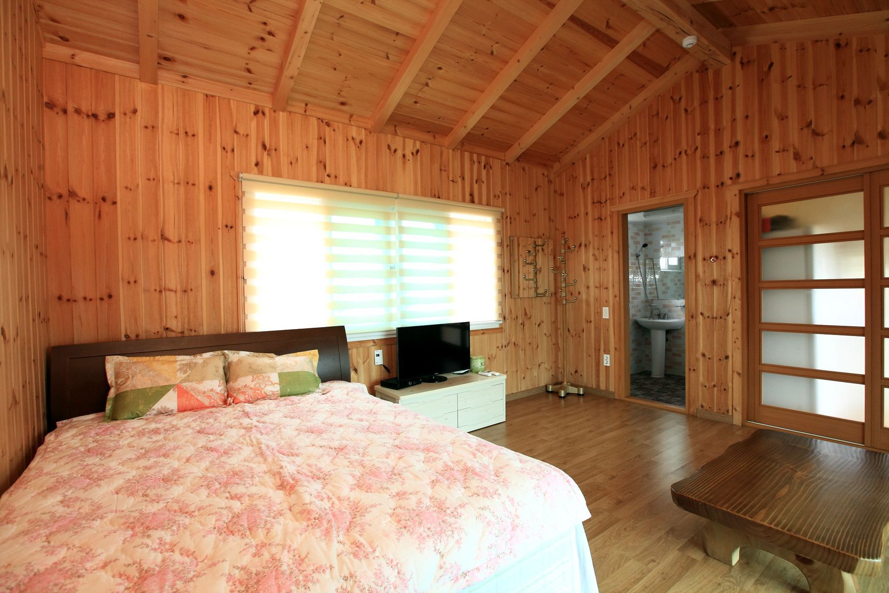객실전체가 원목으로 이루어져 있어 , 자연친화적인 인테리어 또한 편안함을 더해주고