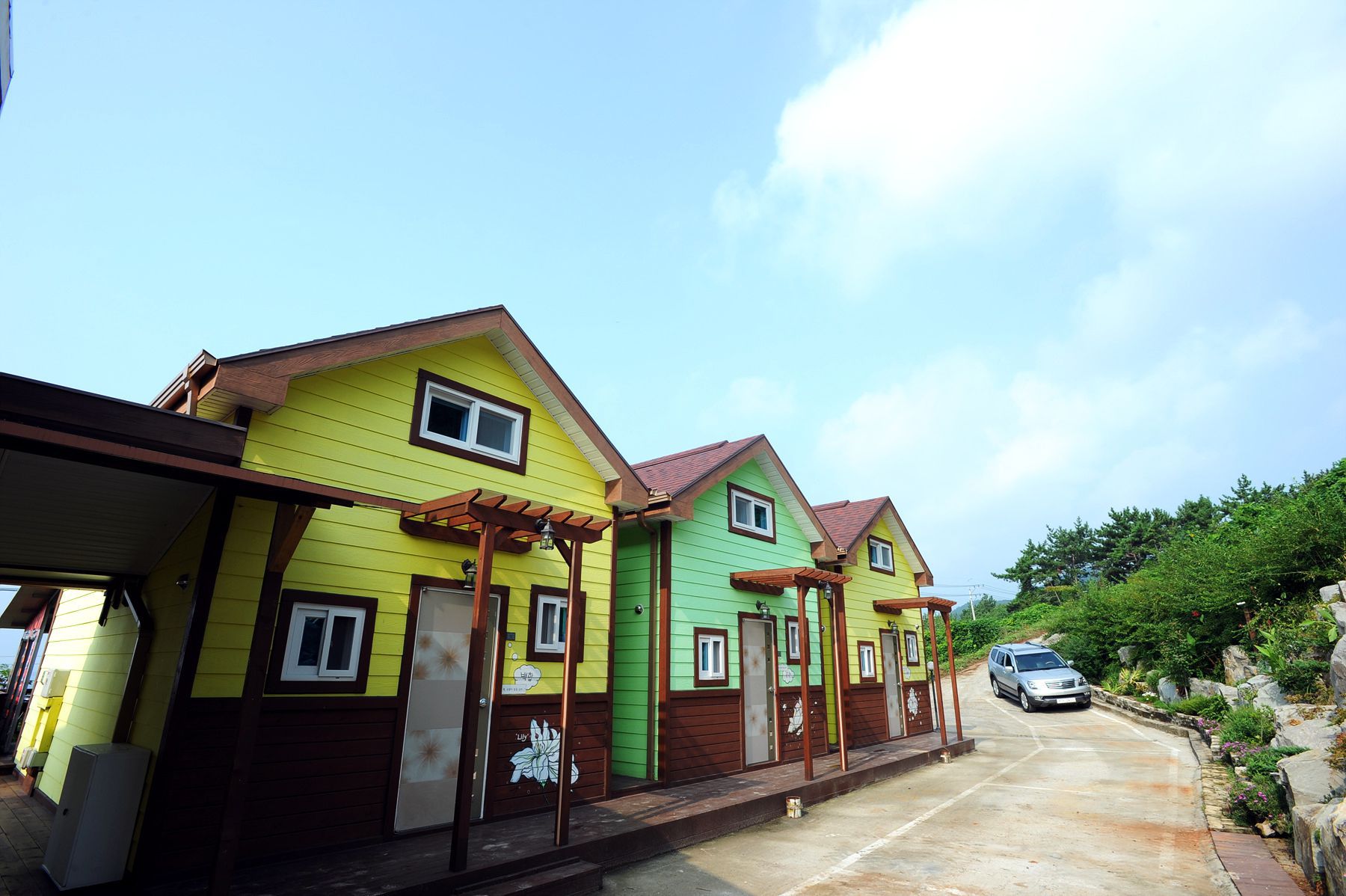 각 객실마다 독채로 이루어져 있어 가족단위,커플들에게 최적의 조건을 가지고 있는 펜션이며