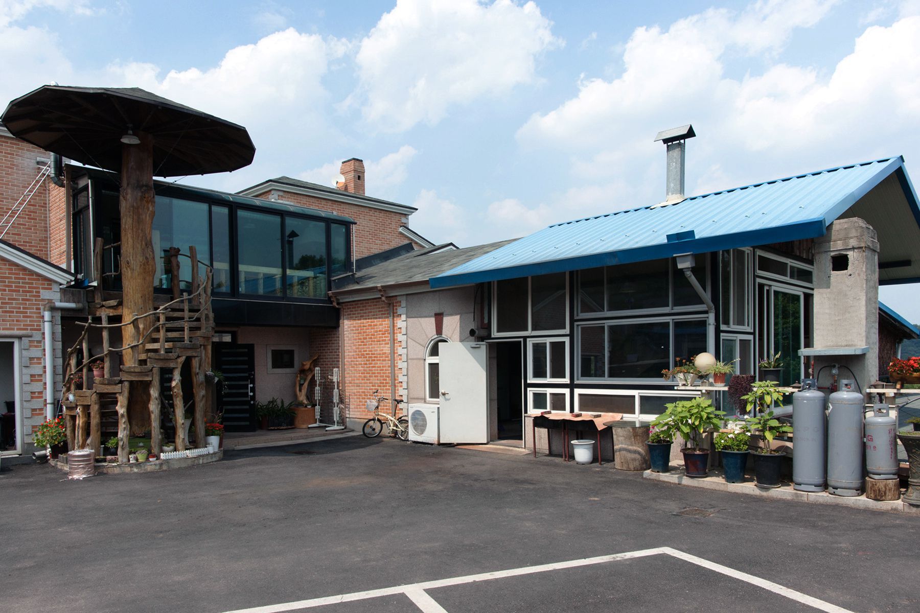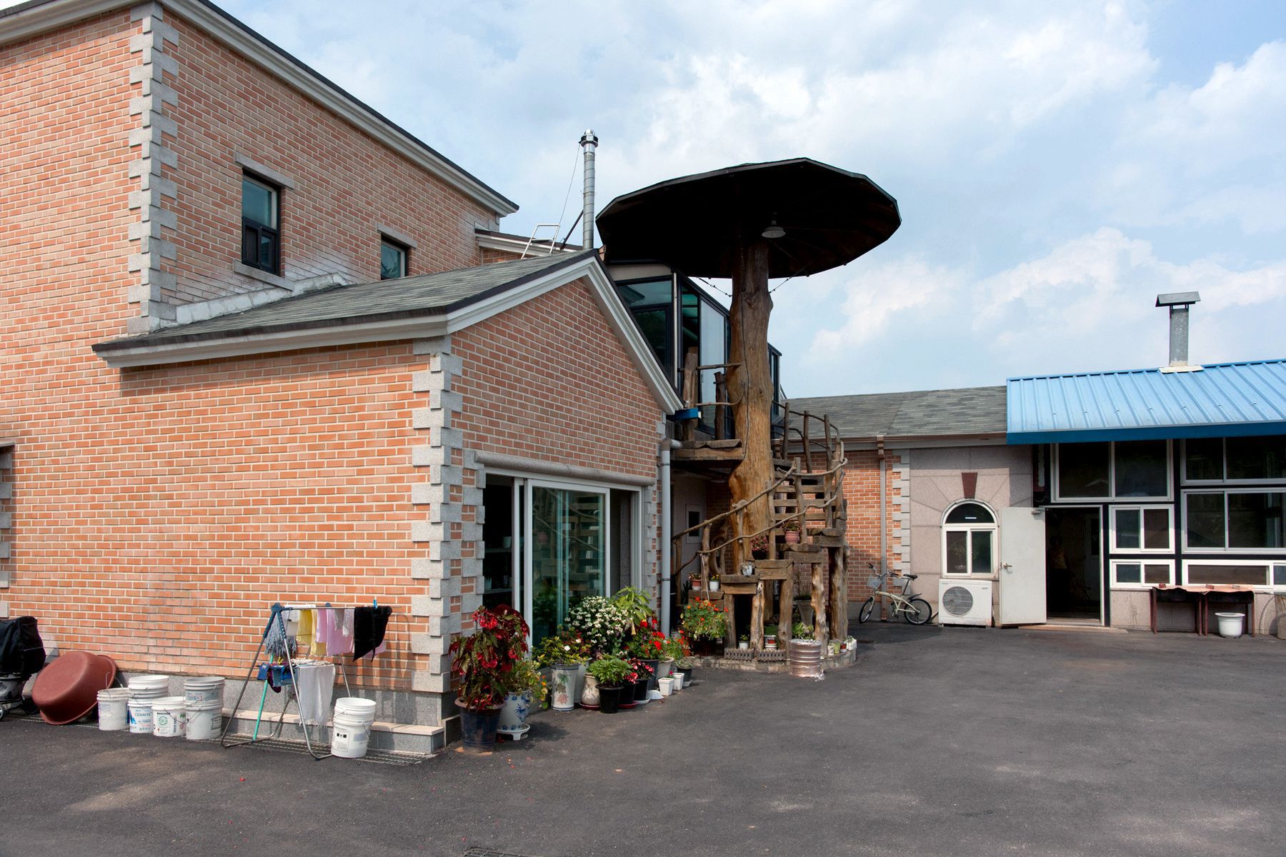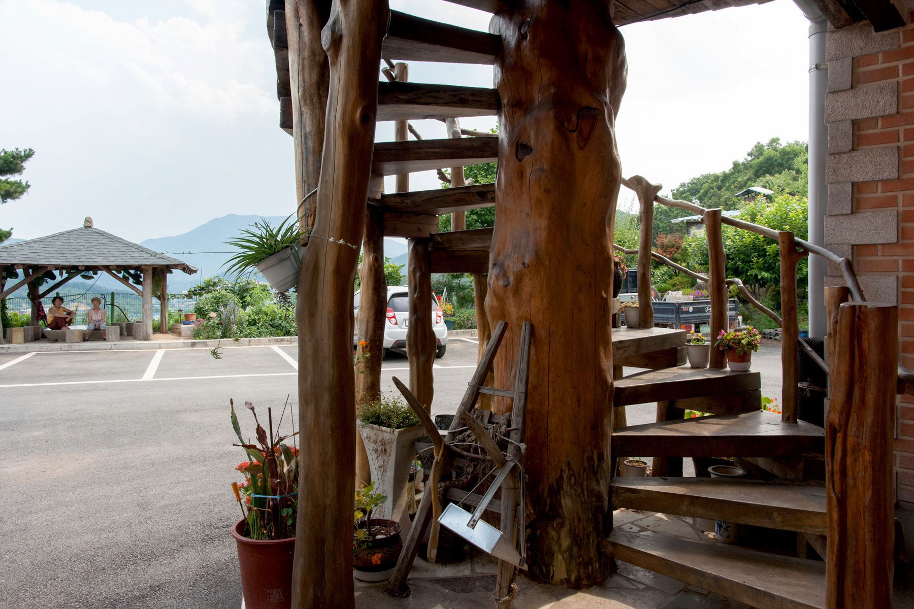 큰 아름드리 소나무를 빙글빙글 타고 올라가 하늘 아래 꾸며진 하늘방에서는