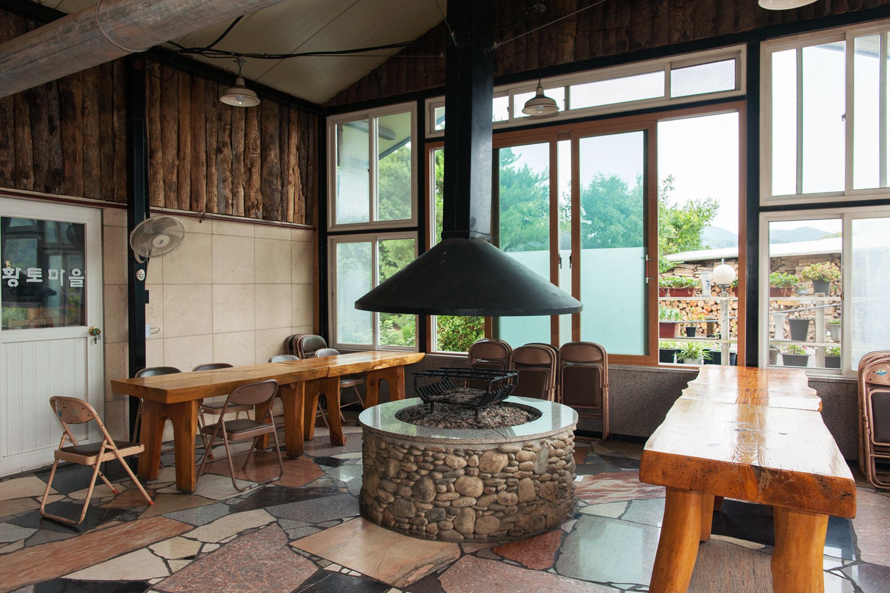 취사는 1층 대식당에서,한 텃밭에서 나는 신선한 야채와 함께 바베큐를 즐기실 수 있는 공간뿐만아니라