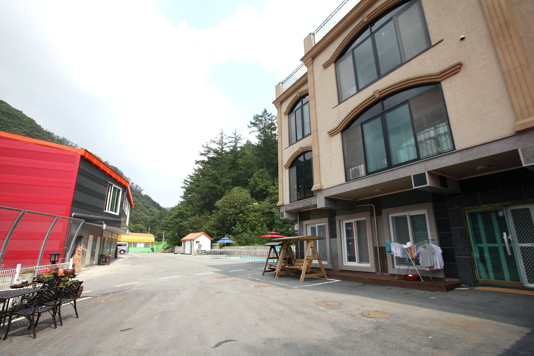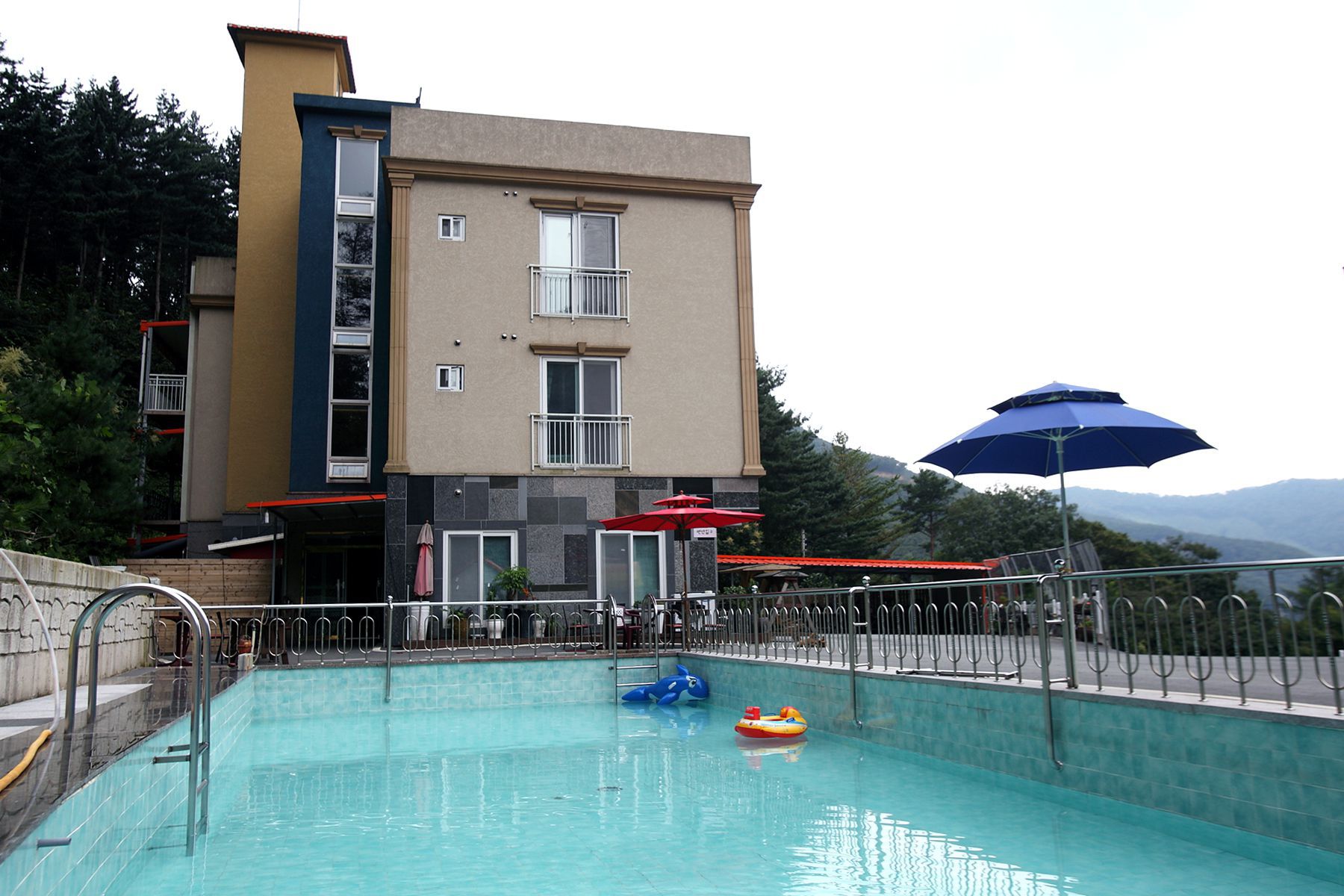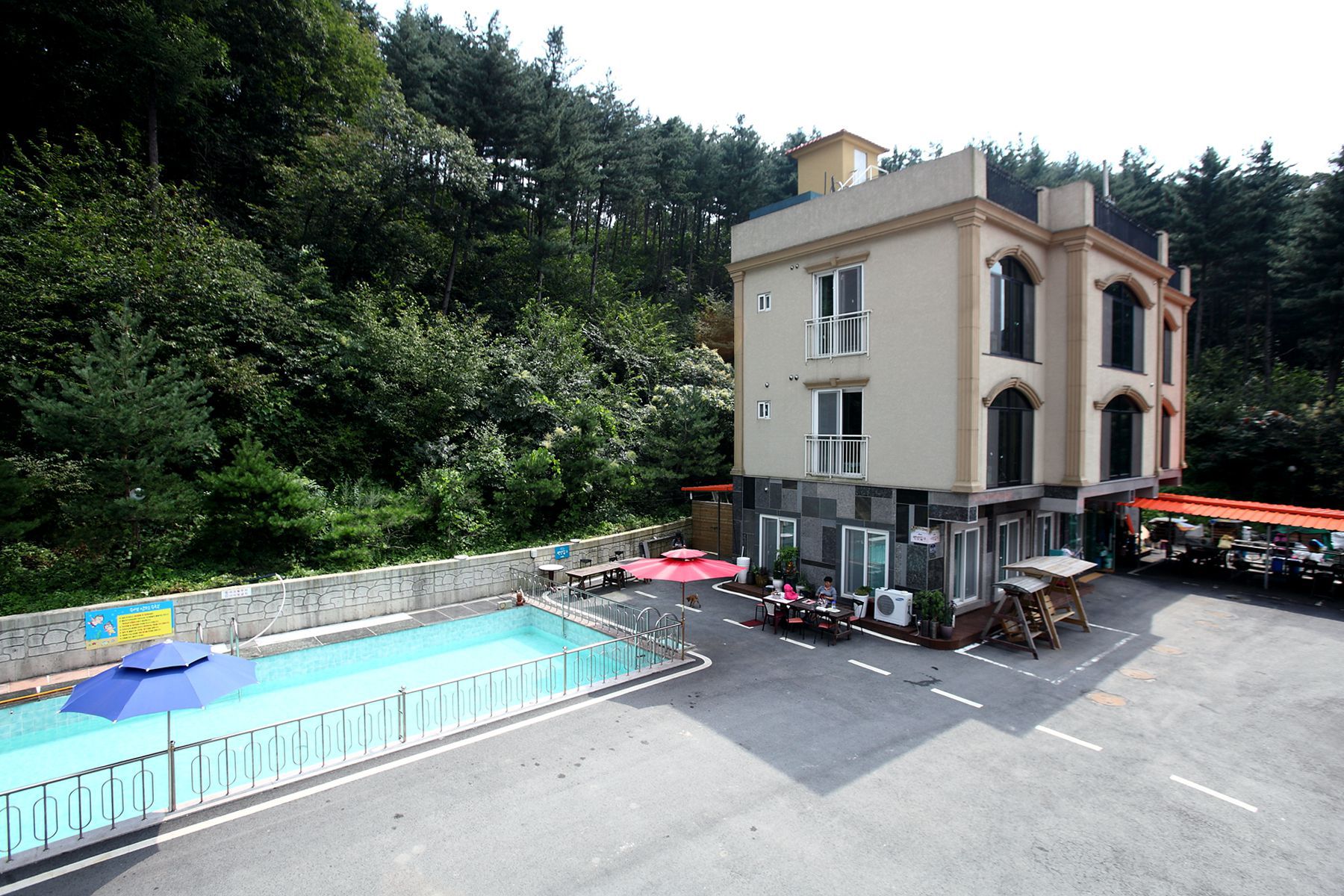넓은수영장,트렘플린,족구장,넓은 바비큐시설,세미나실,식당등