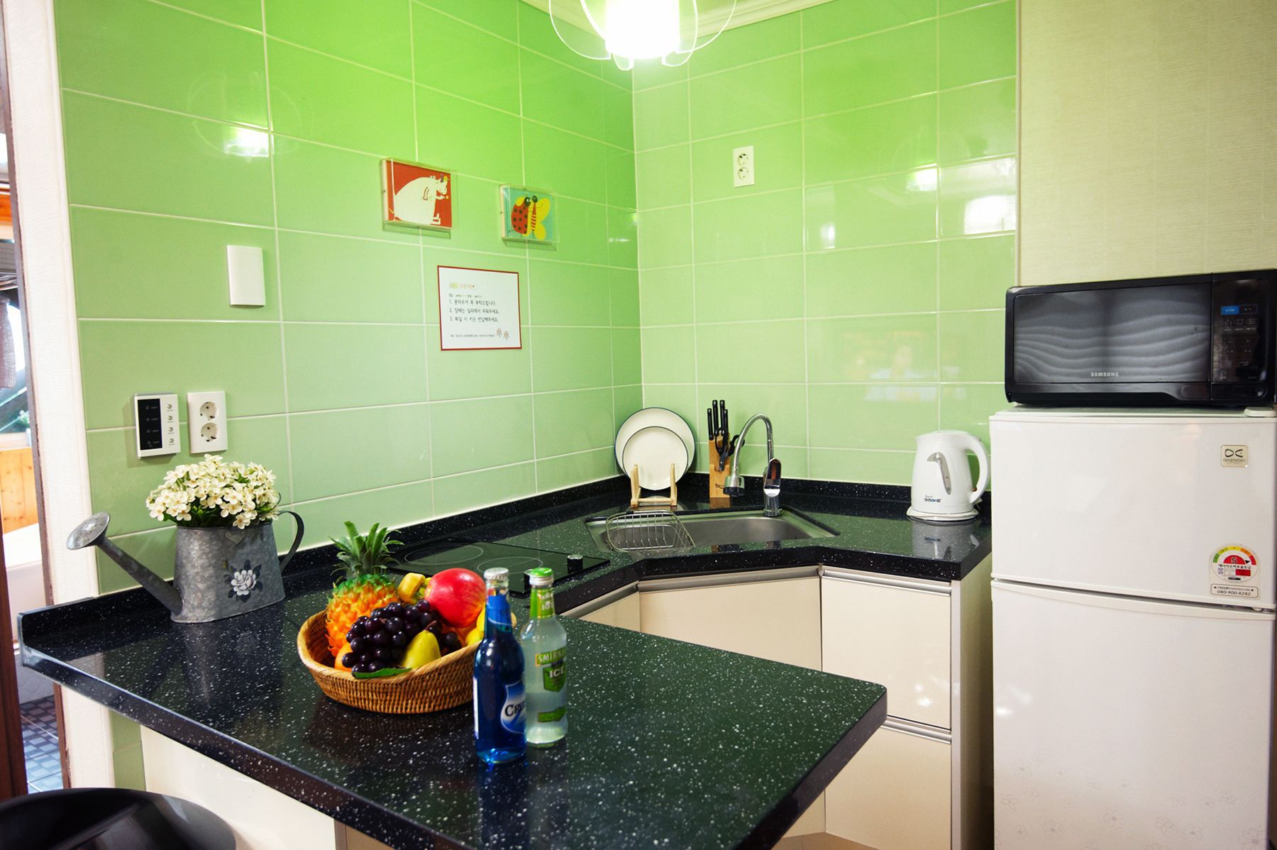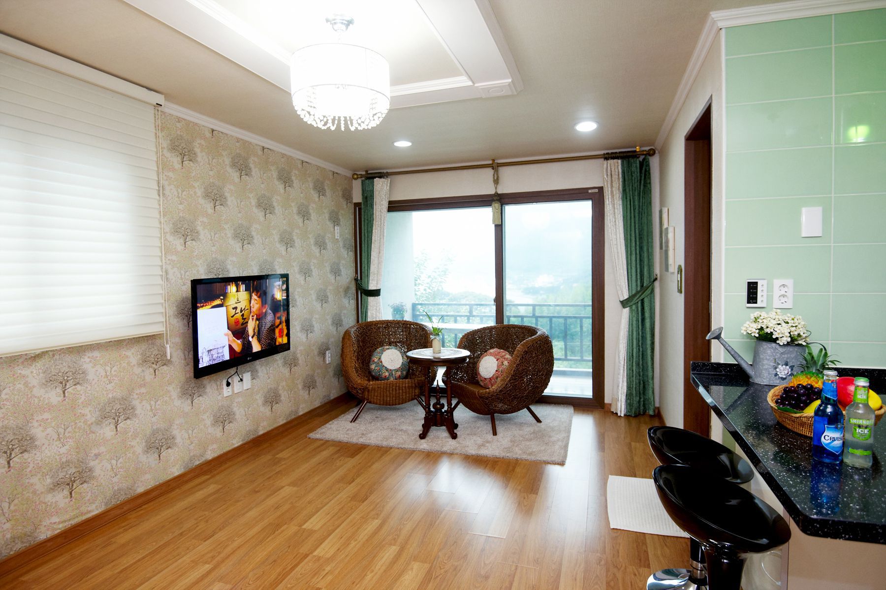 깔끔하고 깨끗한 거실과 주방을 갖추고 있는 객실입니다.^^