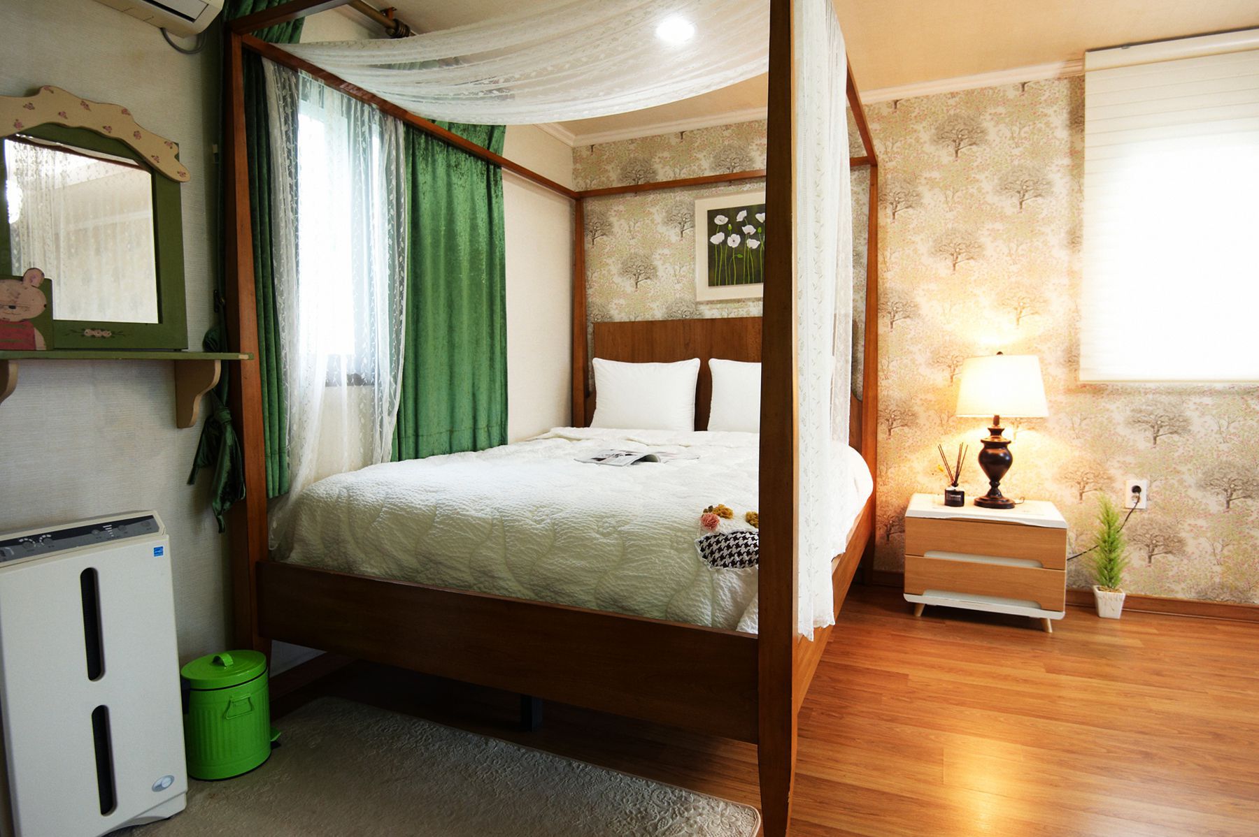 원룸형 침대룸으로 푹신하고 호텔침구류가 부럽지 않을만큼 뽀송하고 청결한 침구류를 가지고 있는 침대,
