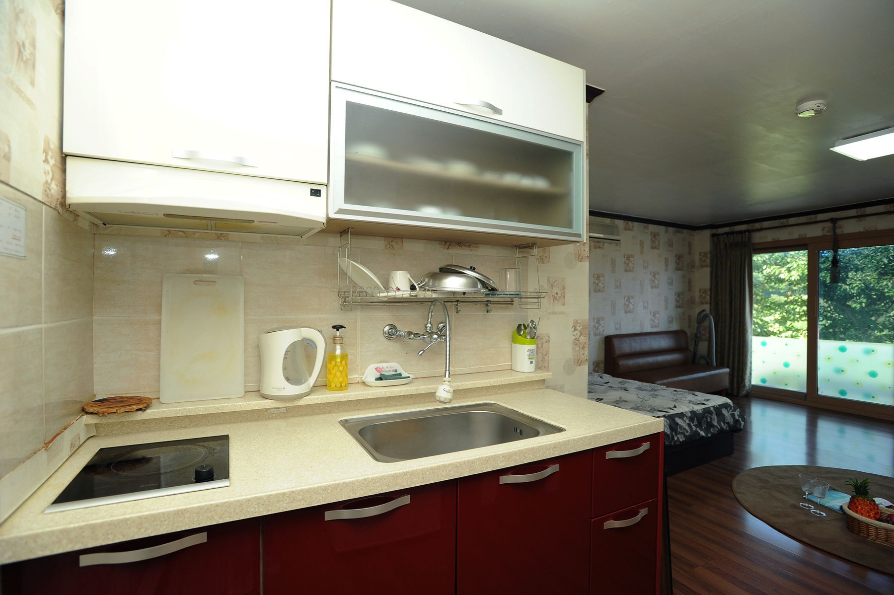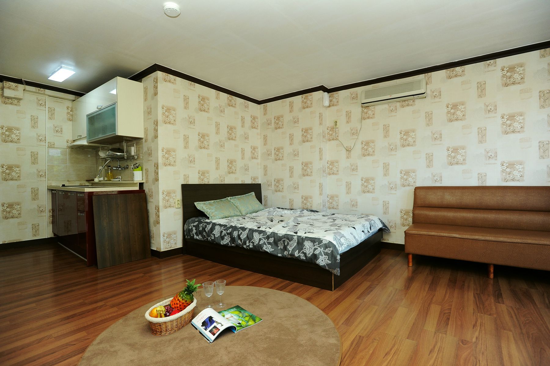 원룸형으로 화장실과 주방시설이 완비되어 있으며, 침대가 구비되어있고