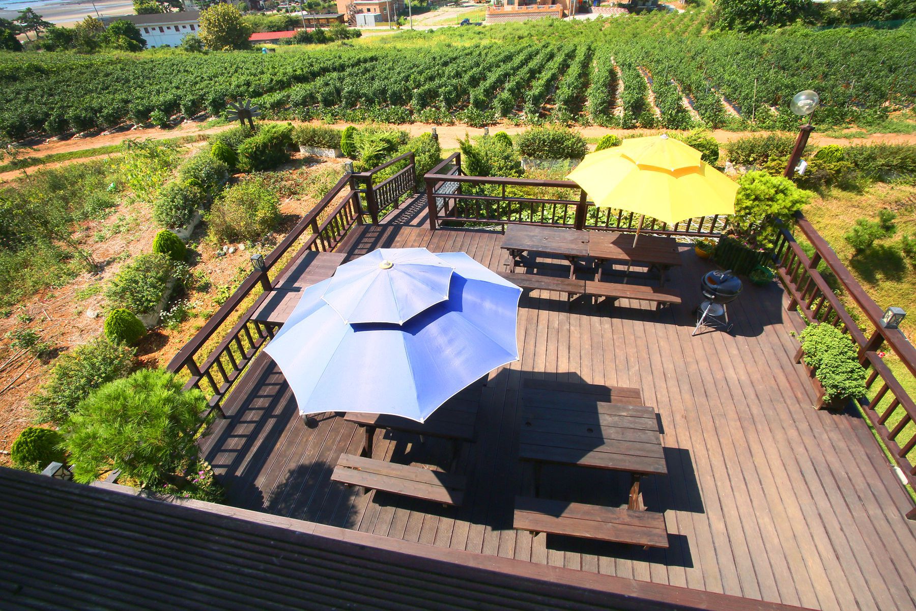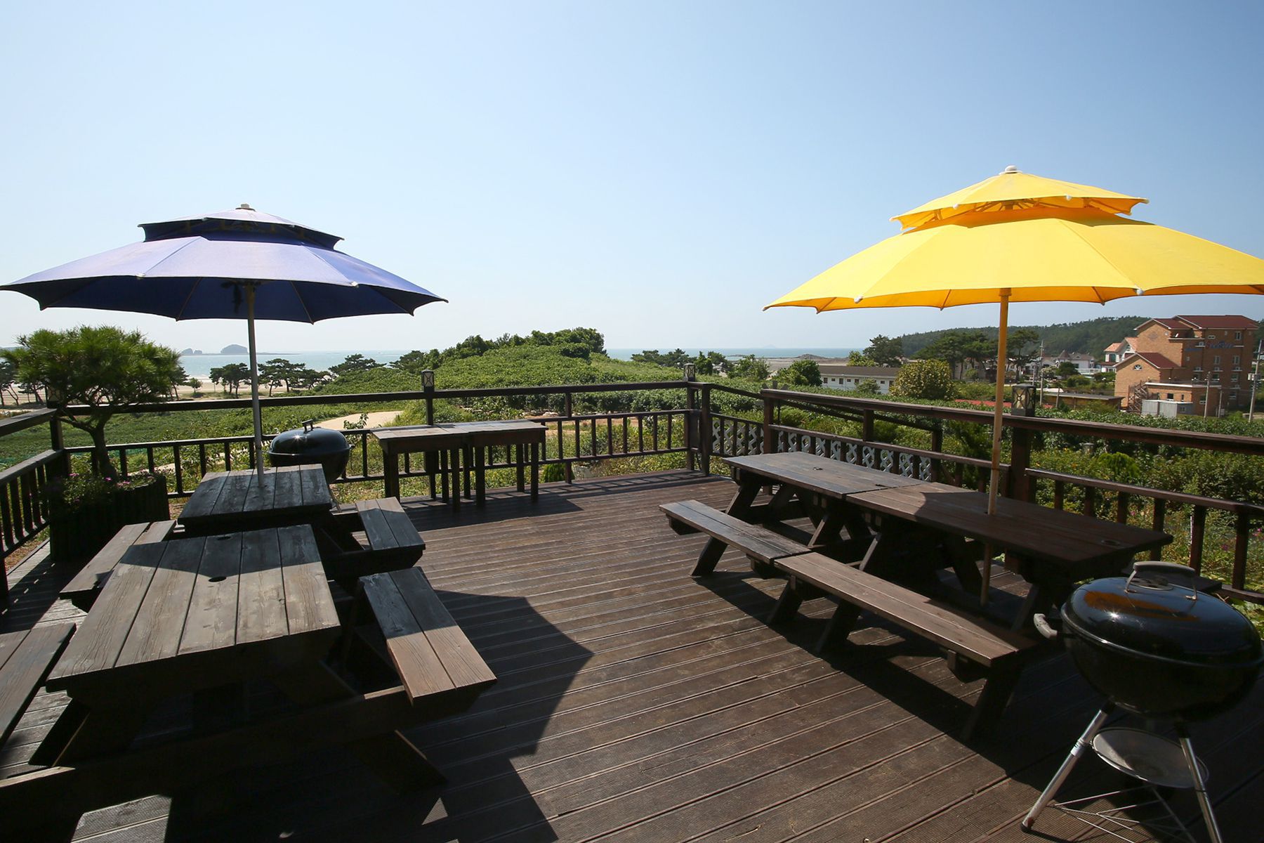 펜션앞 데크에서는 아름다운 경치를 감상하시며 즐거운 바베큐파티를 즐기실 수 있습니다.