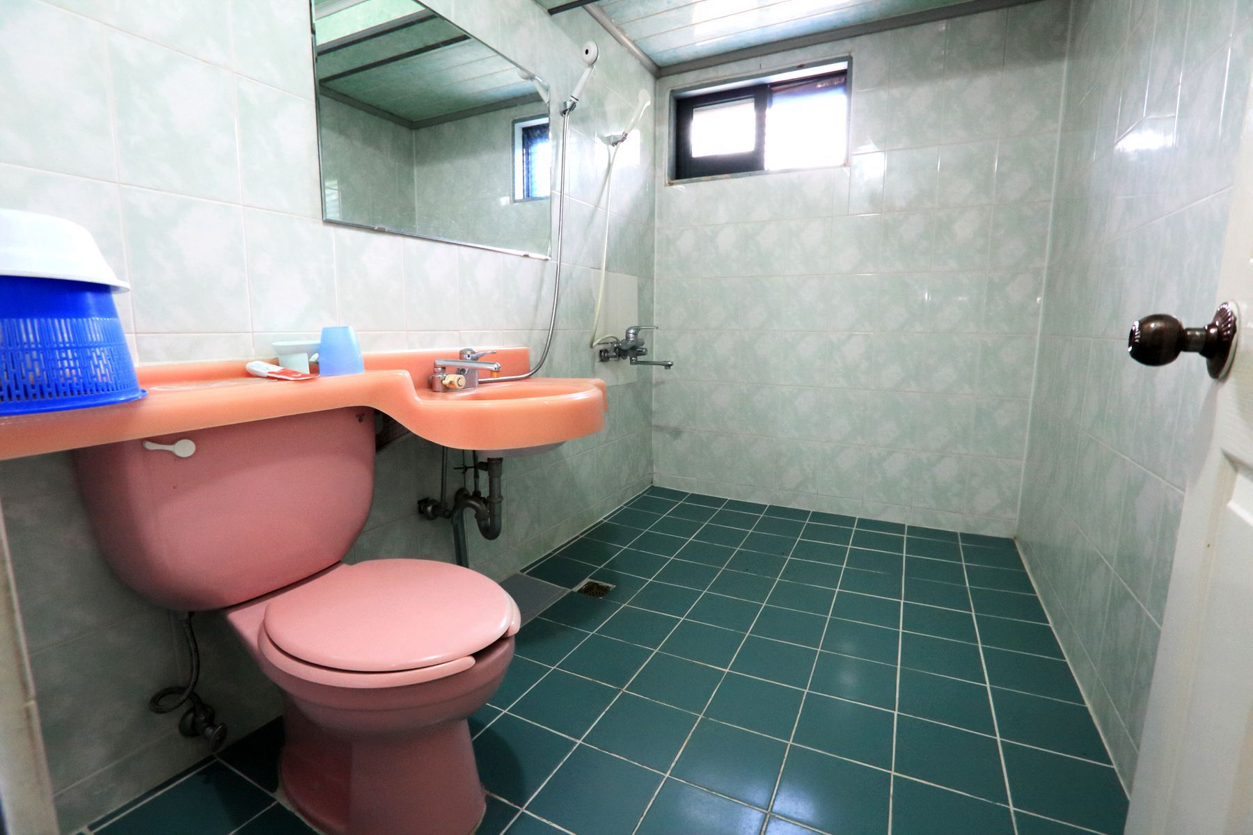 깔끔한 욕실은 높게 자리한 창문사이로 신선한 자연의