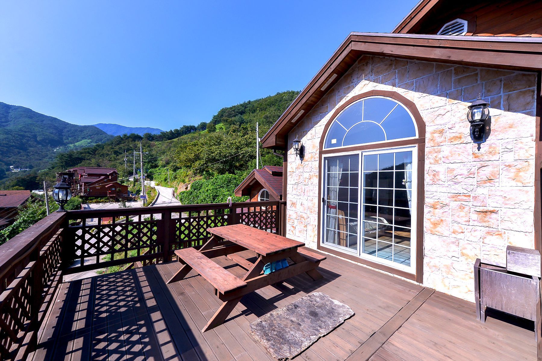 객실바로 앞에 바베큐식사나 차를 마시며 여유를 즐길 수 있는 테이블이 준비되어 있고