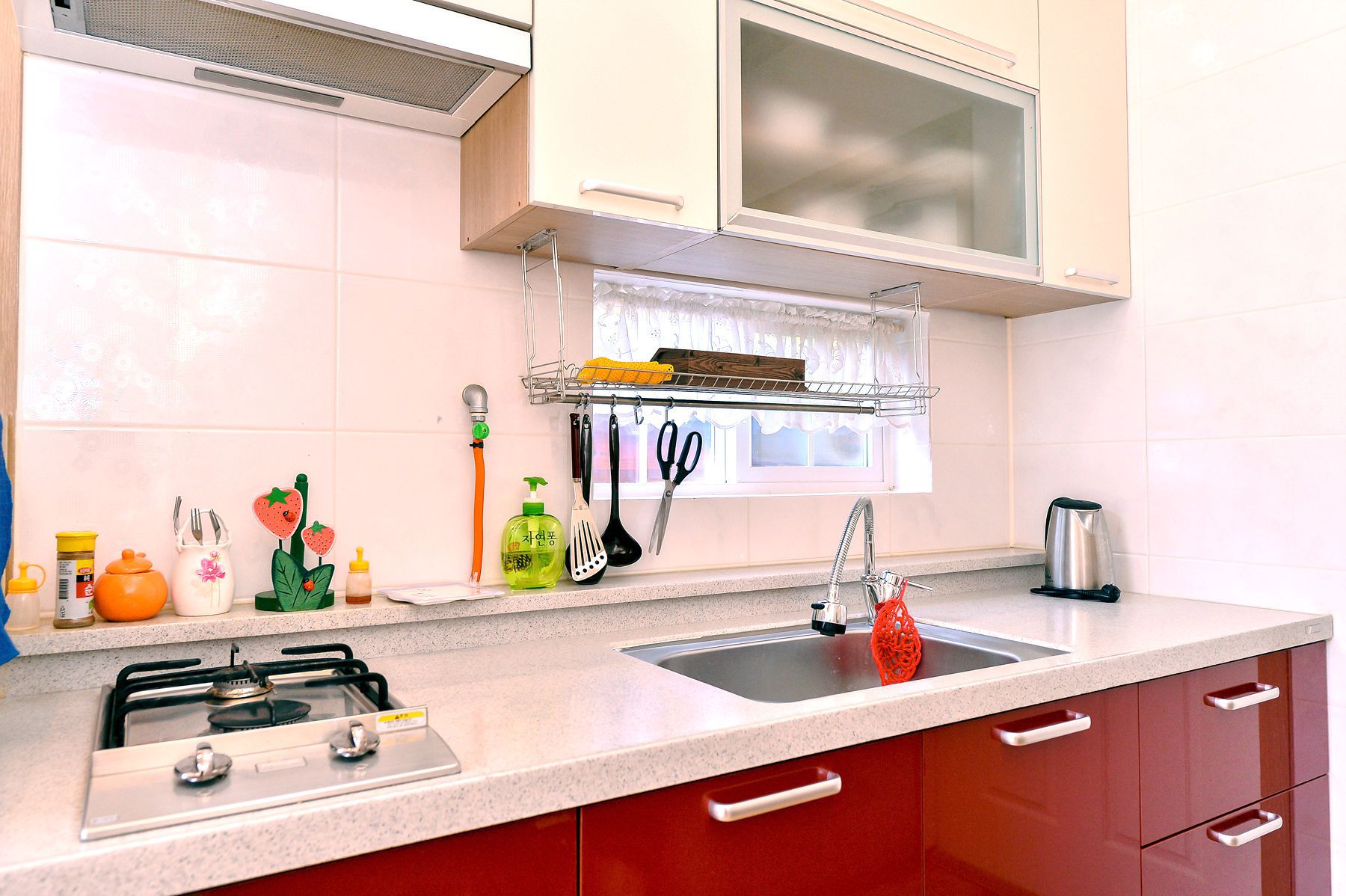 주방용품으로는 잔저렌지,전기밥솥,냉장고,후라이팬,국냄비,밥그릇,접시,소주잔,쟁반,주방세제행주 등
