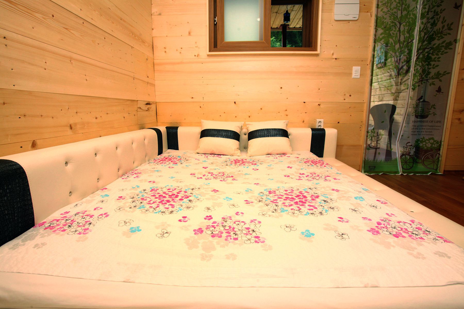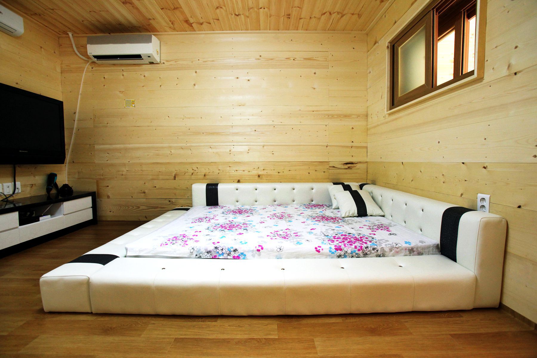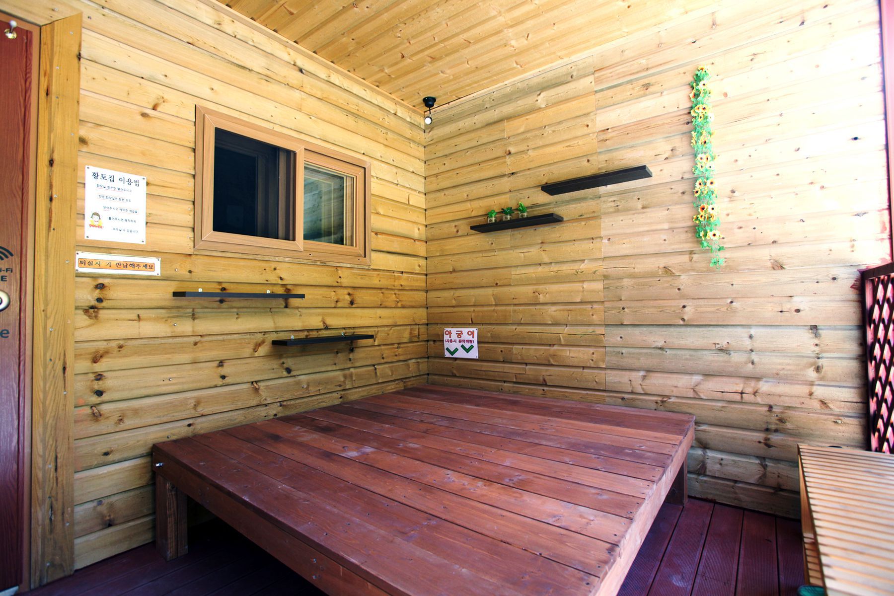 조립식 건축이 아닌 소나무와 황토로 지어진 침대객실과 접이식매트객실로 구성되어 있습니다.