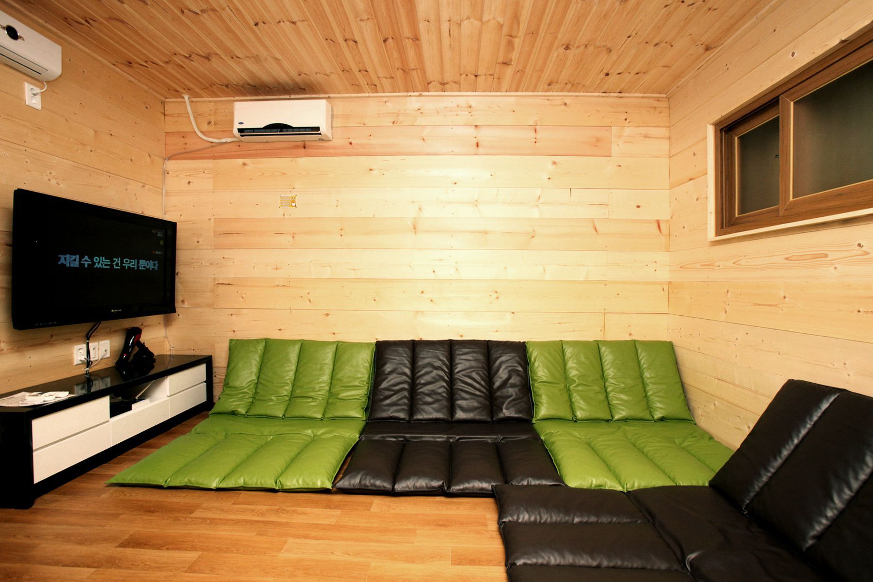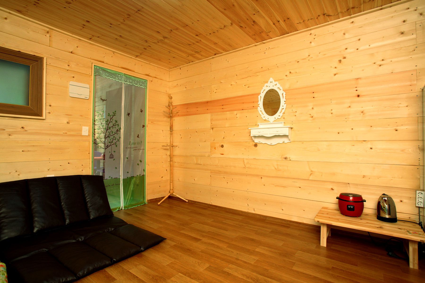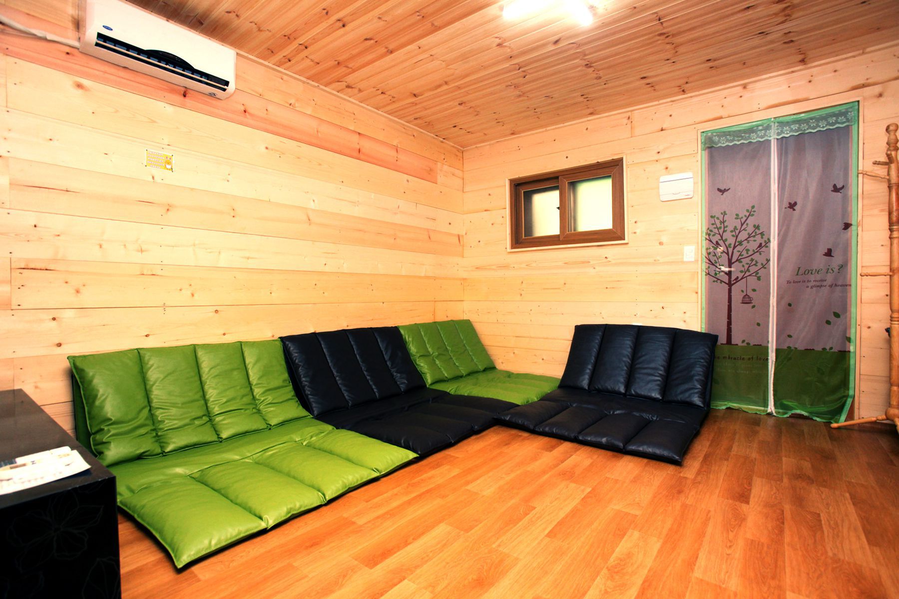 조립식 건축이 아닌 소나무와 황토로 지어진 침대객실과 접이식매트객실로 구성되어 있습니다.