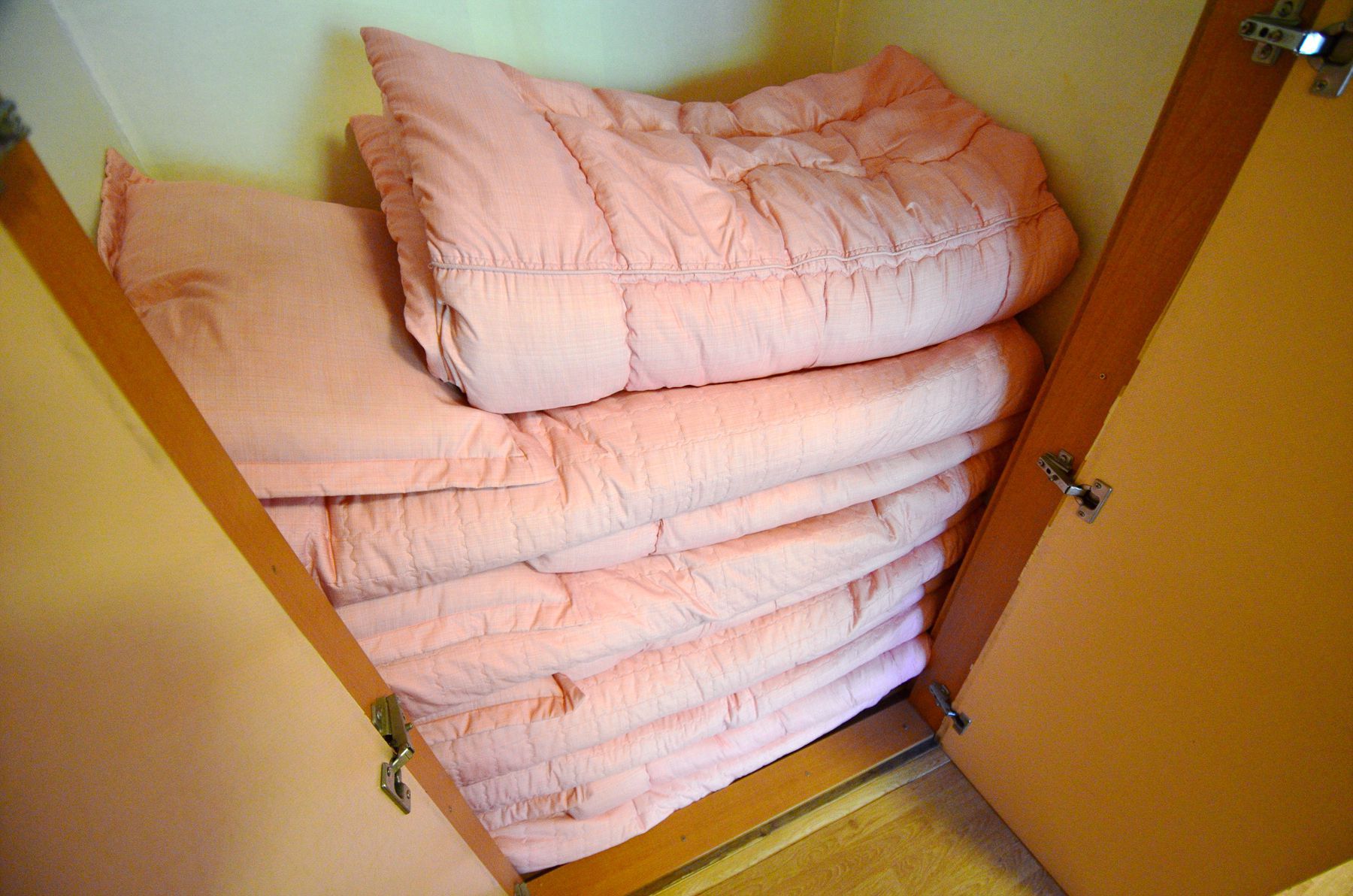 크고 넓은 실내에 마련된 넉넉한 이불류는 폭신폭신하고 깔끔해서
