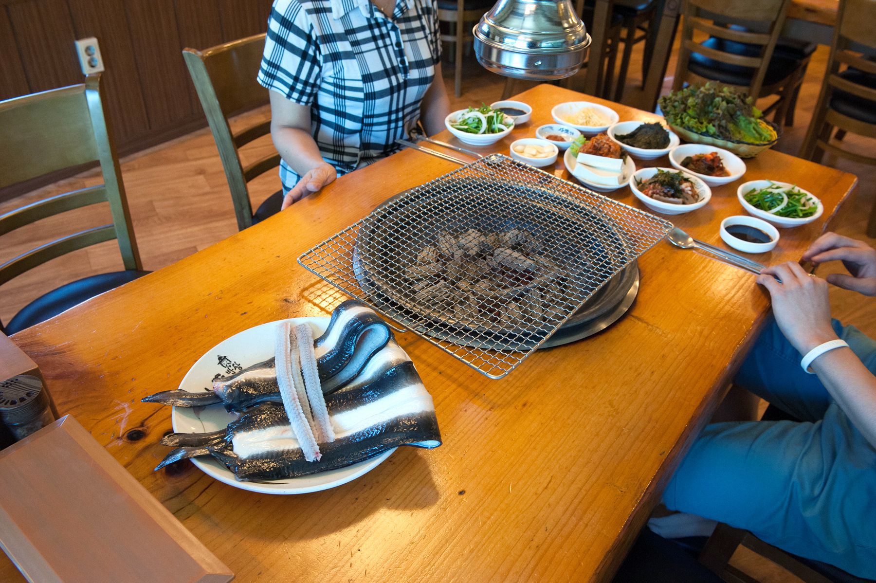 야채기본상차림비를 내고 직접 장어를 구워 먹어야 하는 이곳은