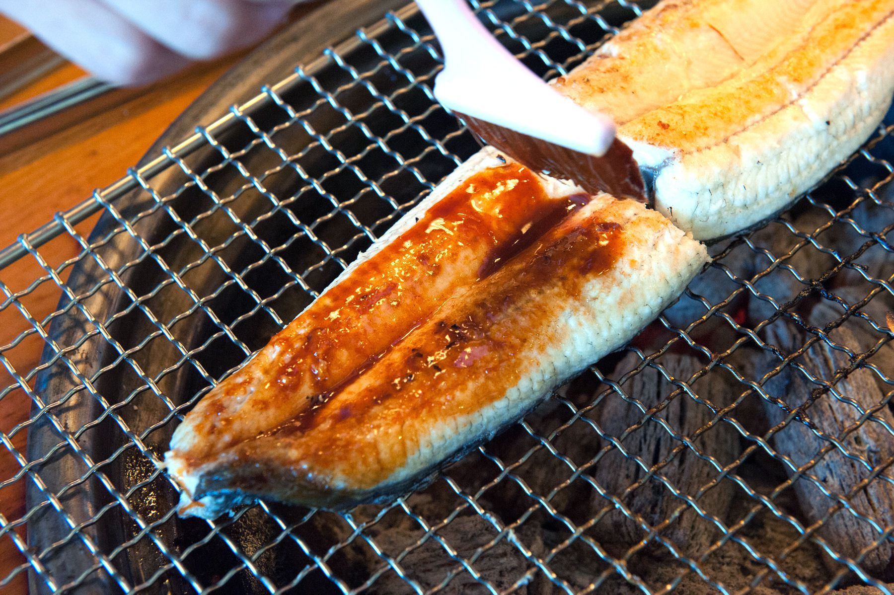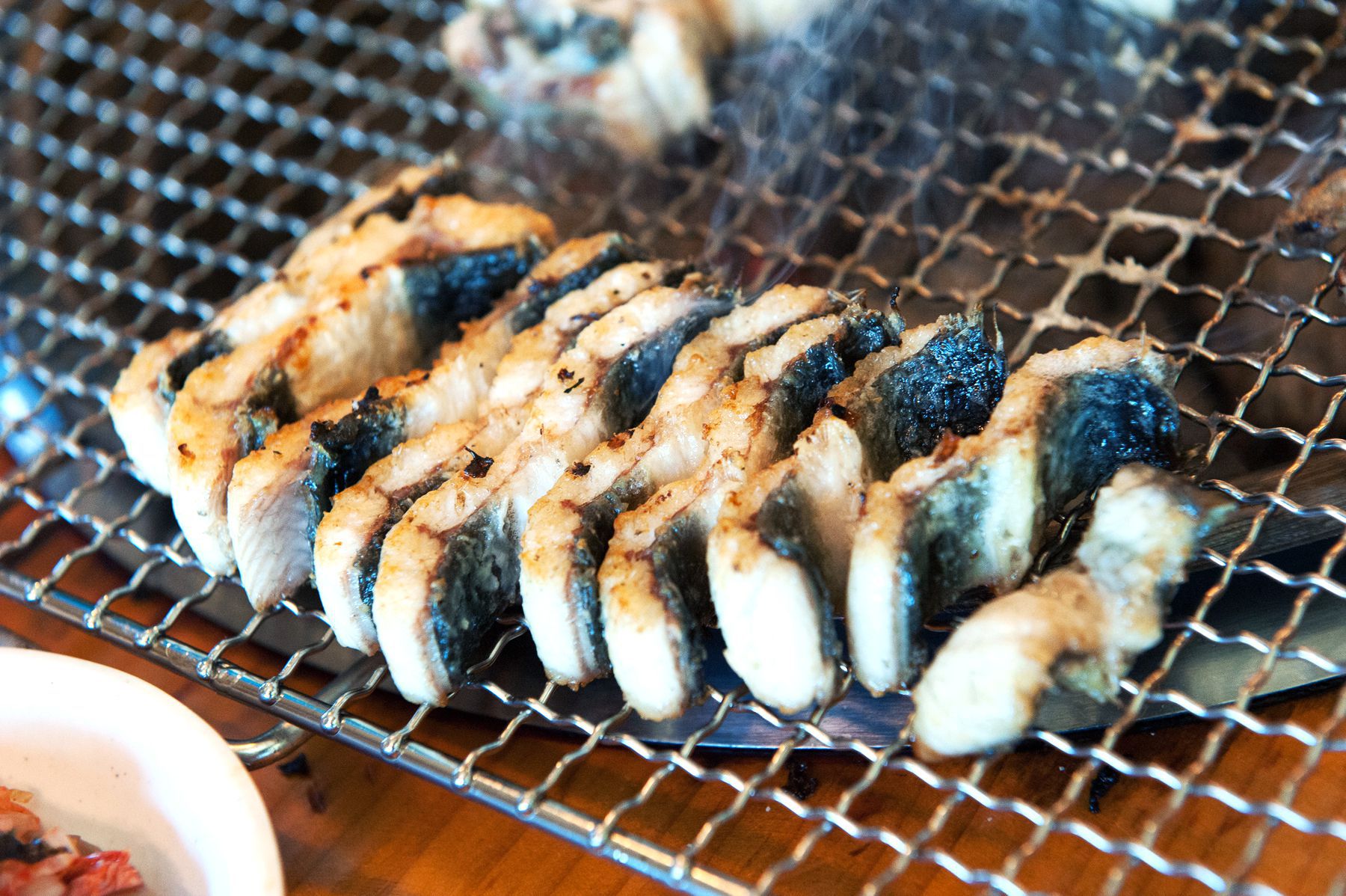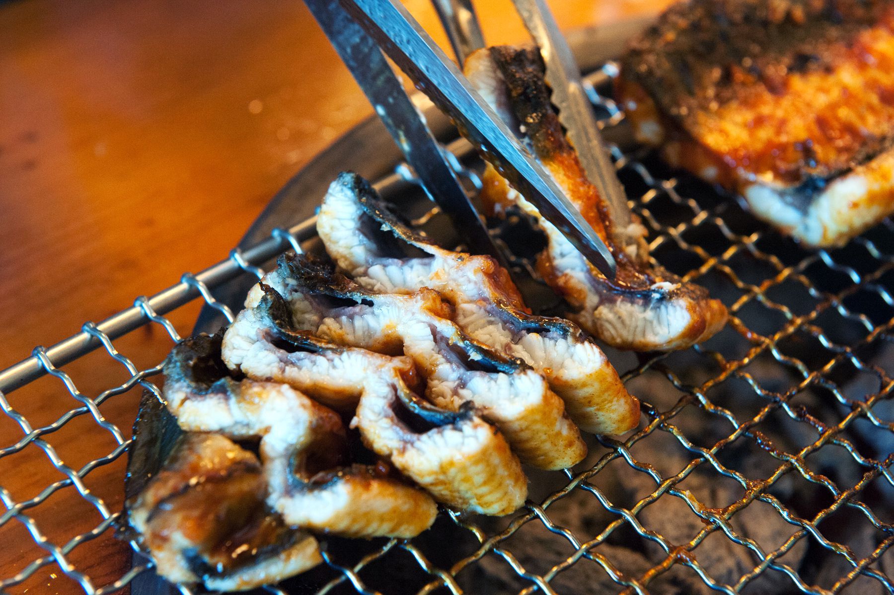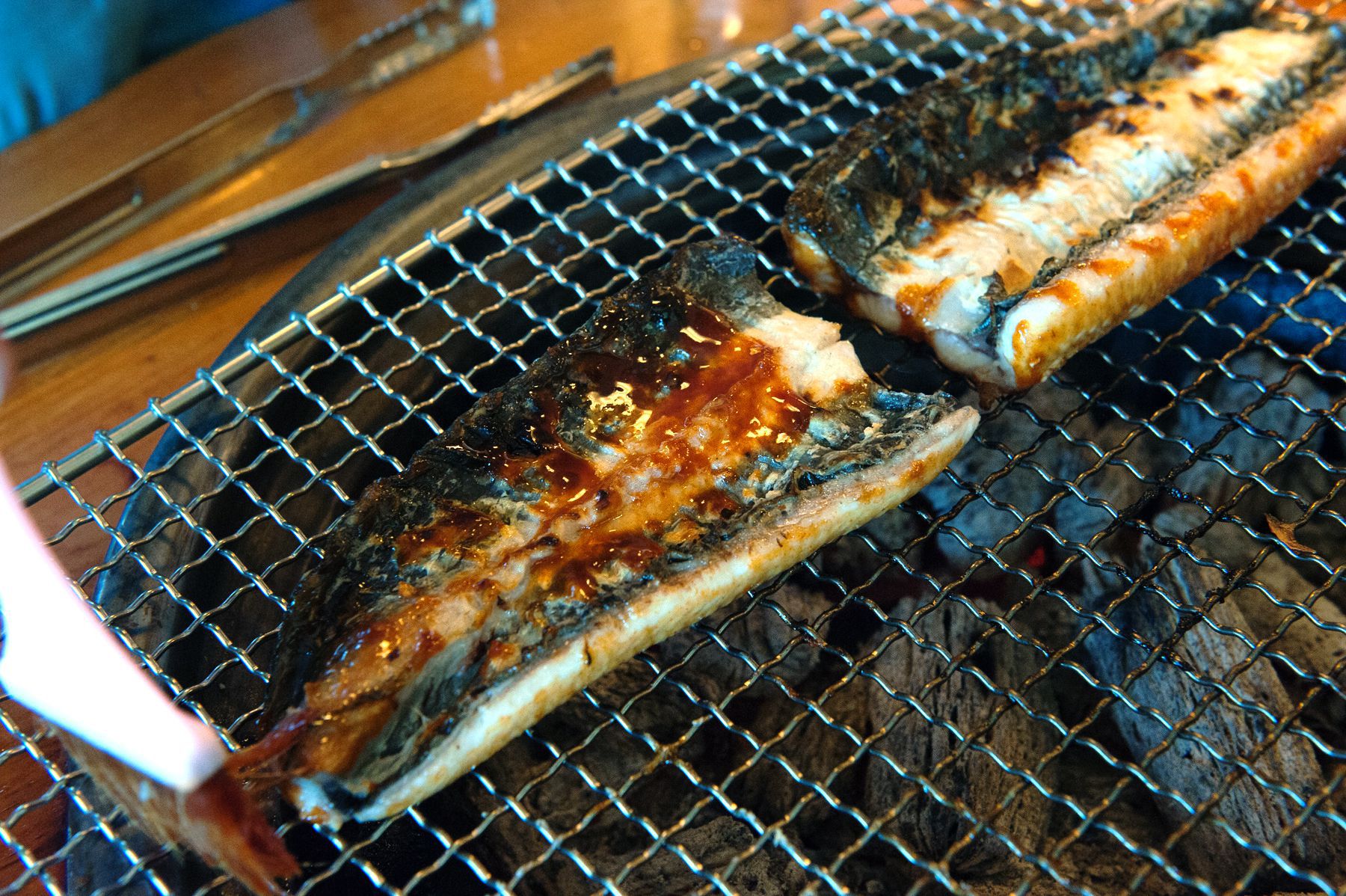 장어살이 석쇠에 붙지 않도록 1-2회 들었다 놓고 노릿노릿 구워주십니다.