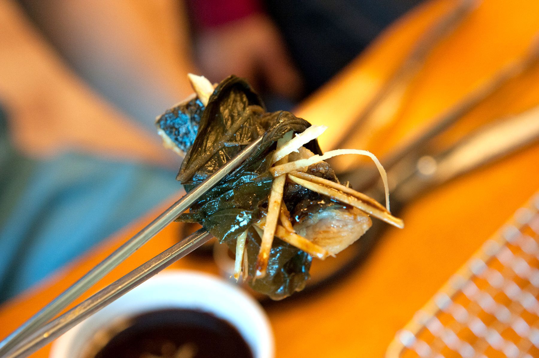 소금구이로 구워진 장어를 담백한 맛 그대로 즐기셔도 좋지만 깻잎장아찌에 싸서 드시면 새콤달콤하게 드실 수 있습니다.