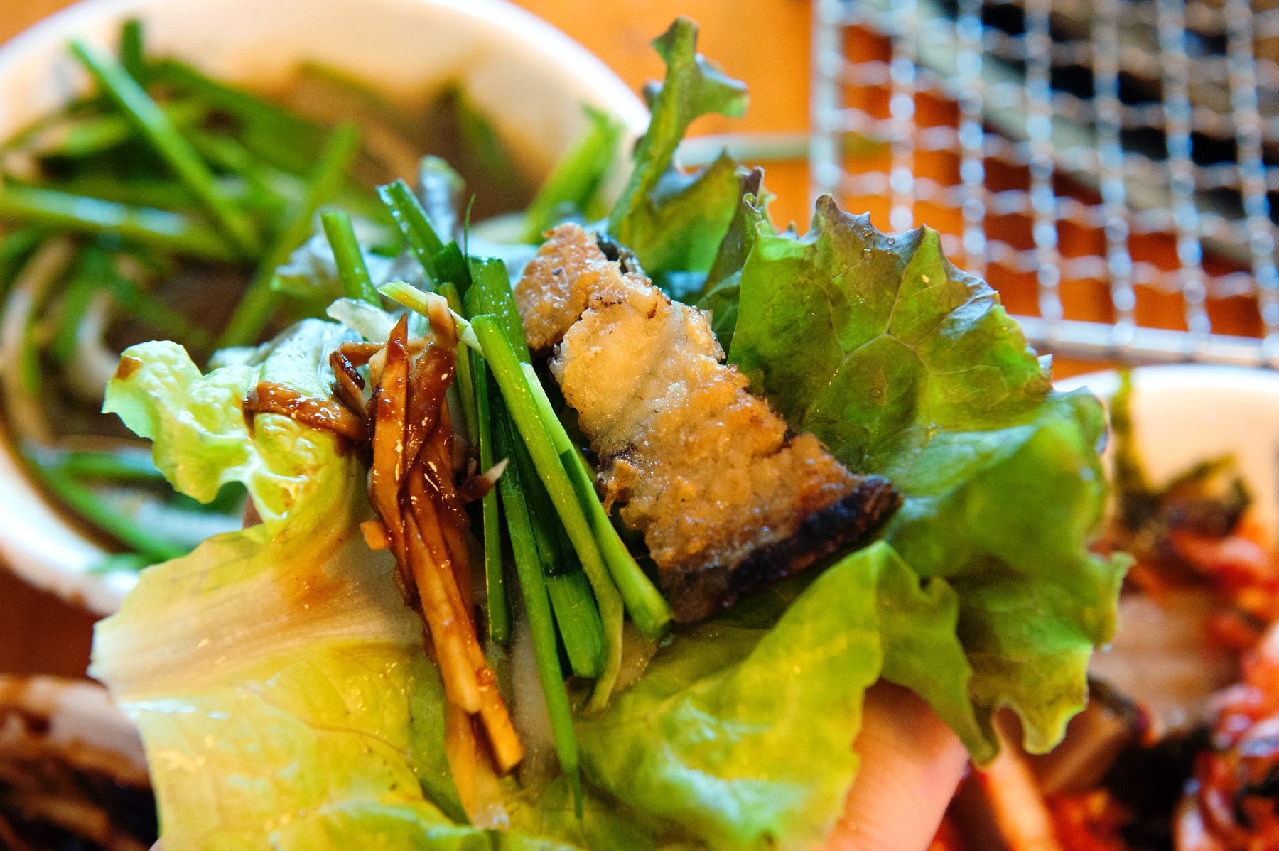 파절임과 상추에 쌈을 싸서 드시면 더욱 풍성한 장어맛을 느끼실 수 있으니