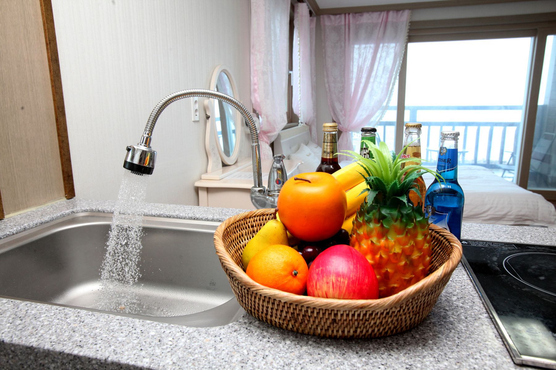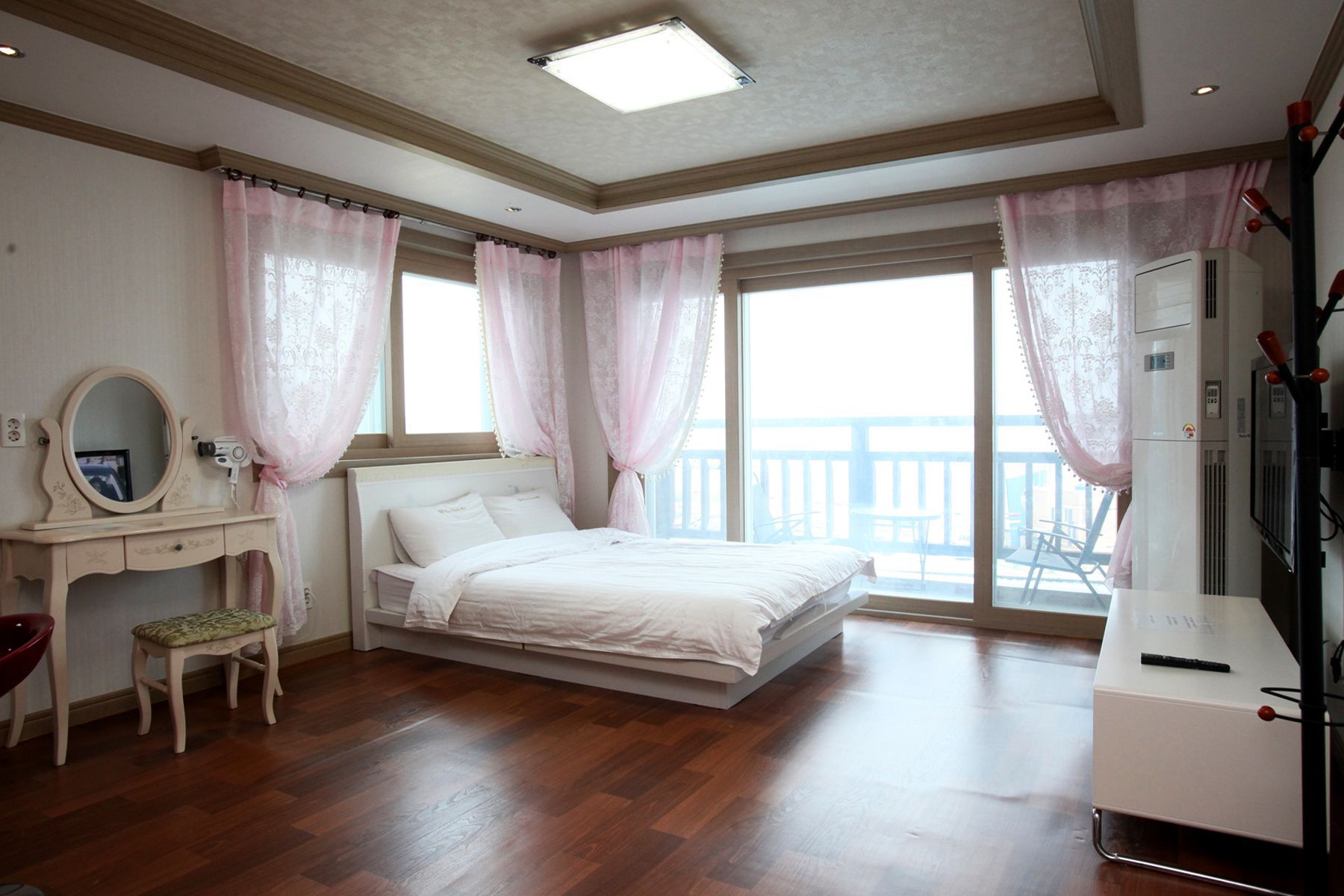 기준인원 2명, 최대인원 4명의 원룸형객실로 침대에 누워 바다를 볼 수 있고,