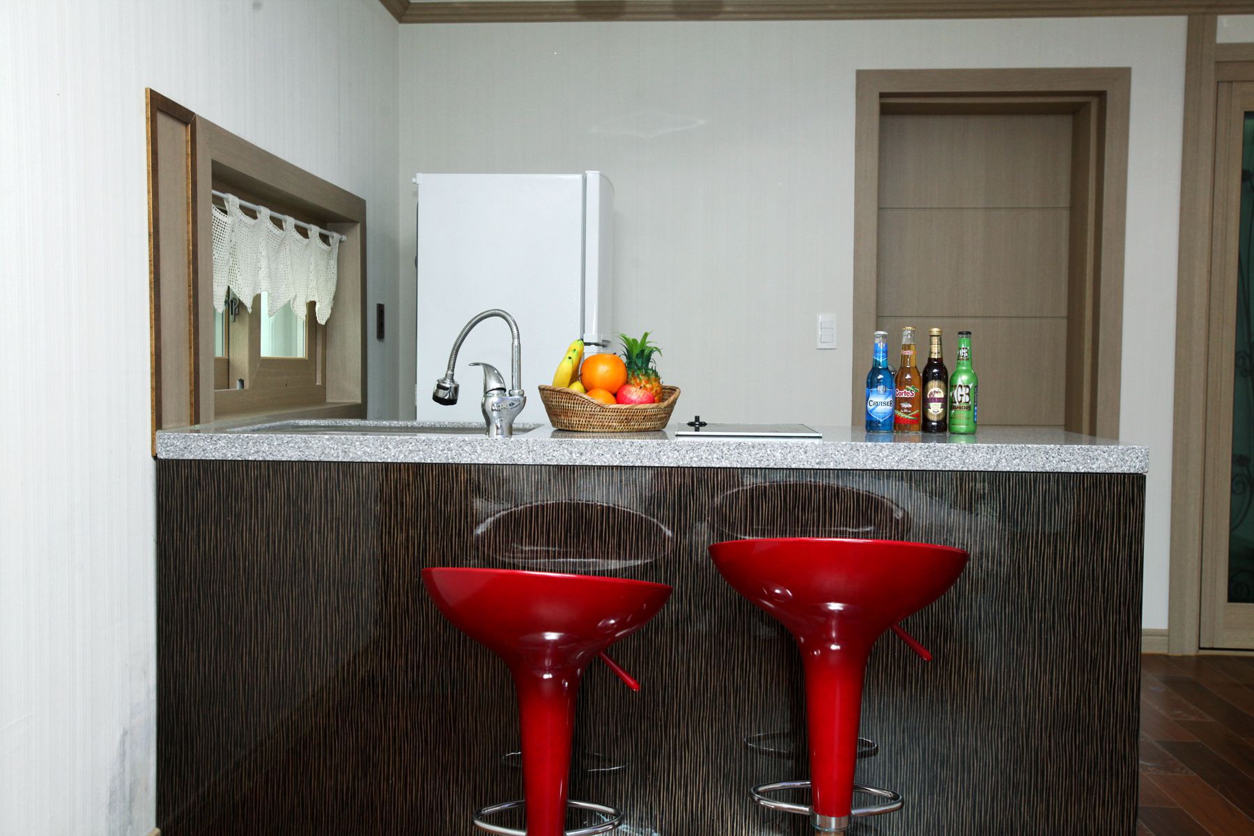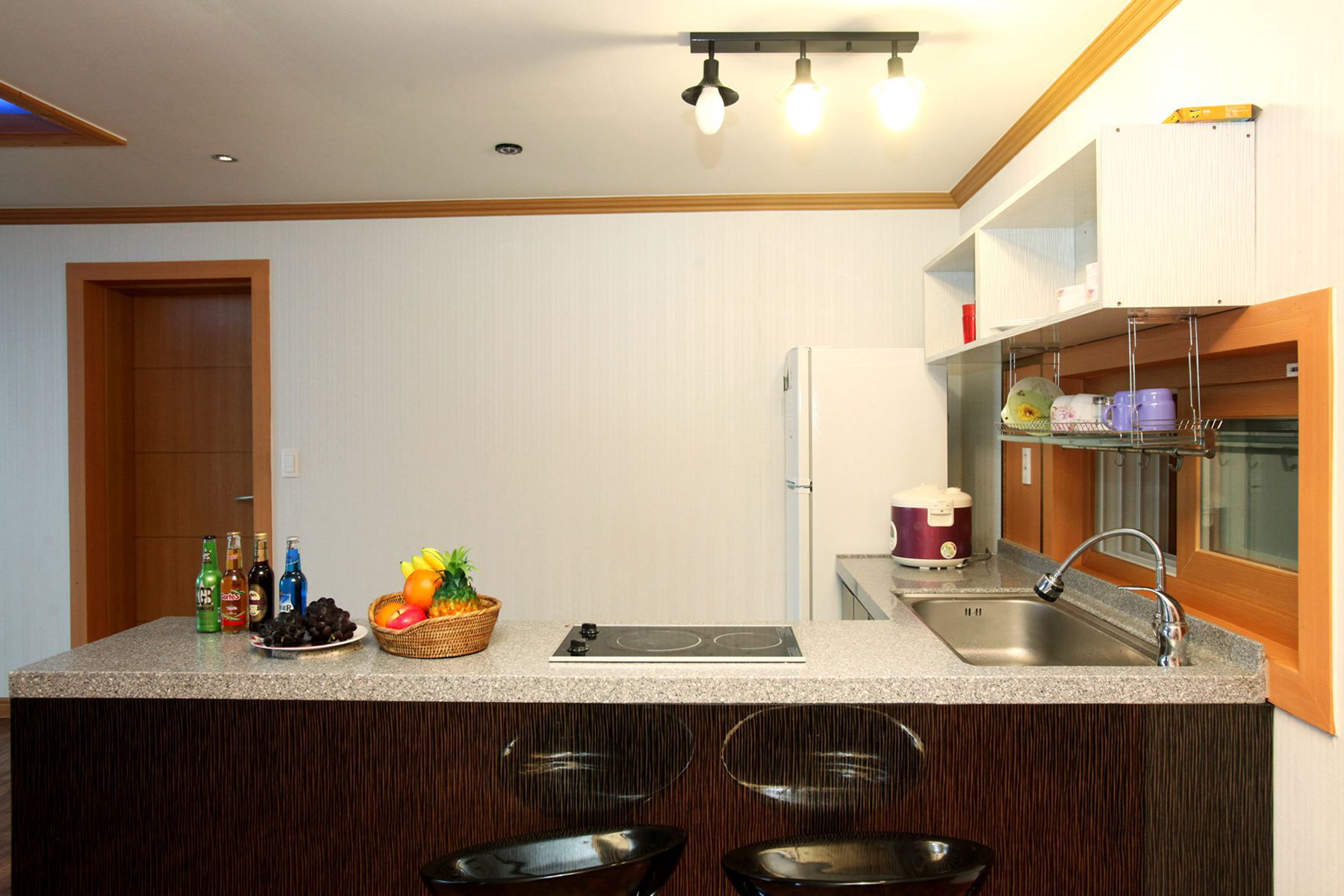 TV, 에어컨, 냉장고, 전기밥솥, 전기쿡탑 등 필요한 가전 모두 구비되어 있고 기본 양념도 준비되어 있는 세심한 서비스가 돋보입니다.