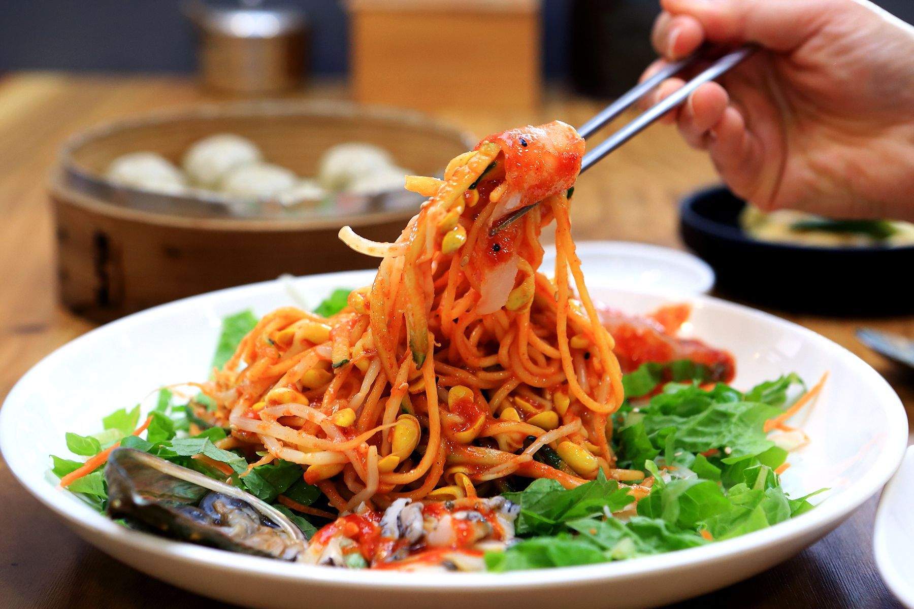 상큼하고 싱싱한 야채와 아삭아삭 씹히는 콩나물까지 식감을 더해