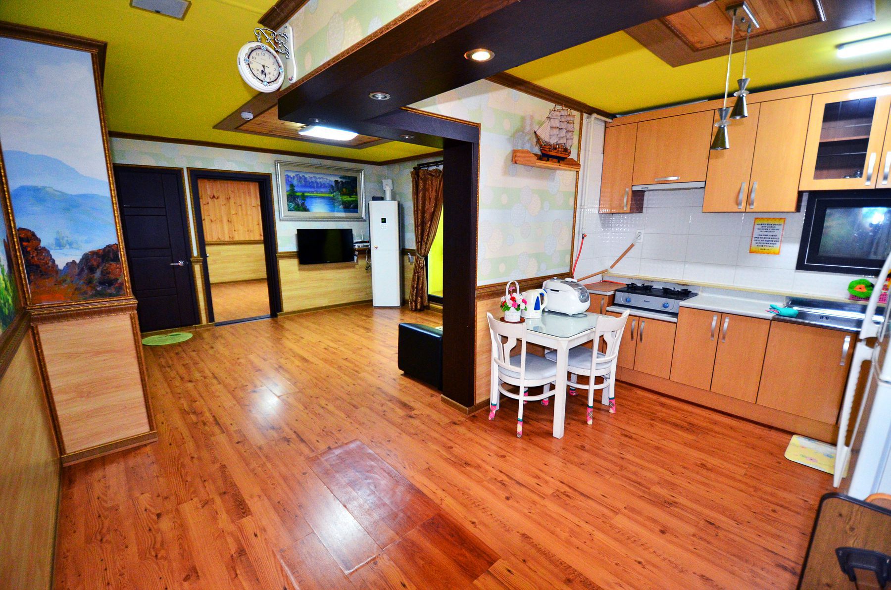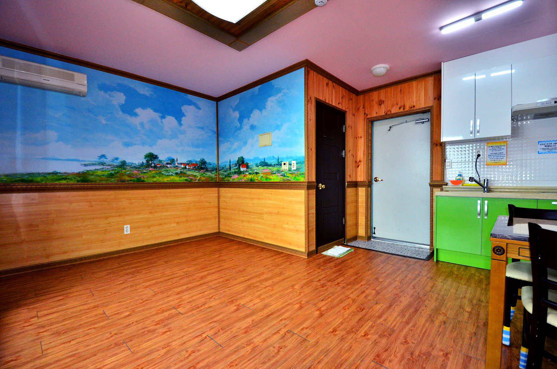 기준인원 12명, 최대윈원 18명의 객실로 넓은 거실과 주방, 온돌룸 2개, 욕실 2개로 구성되어 있습니다.