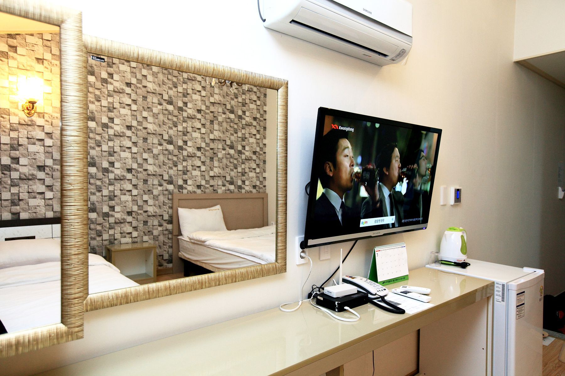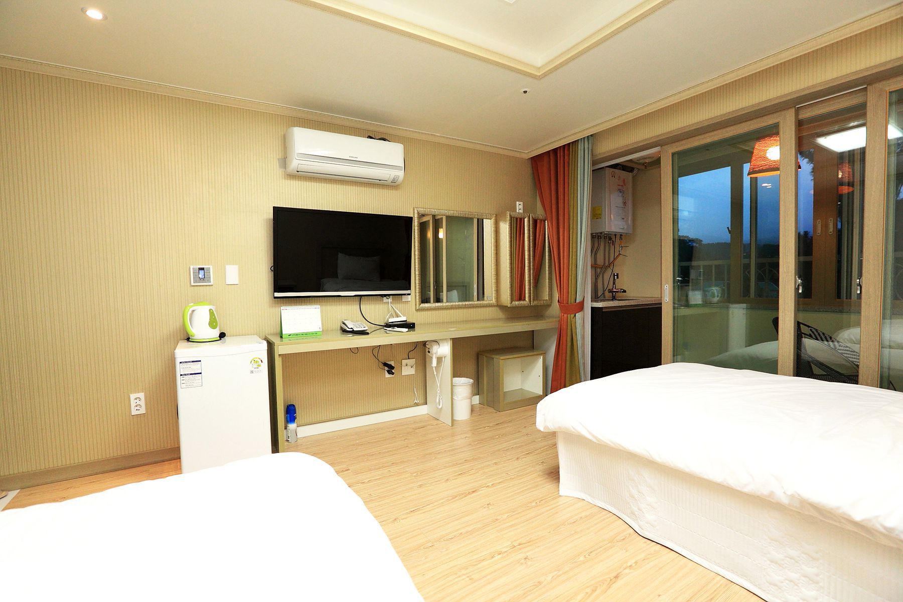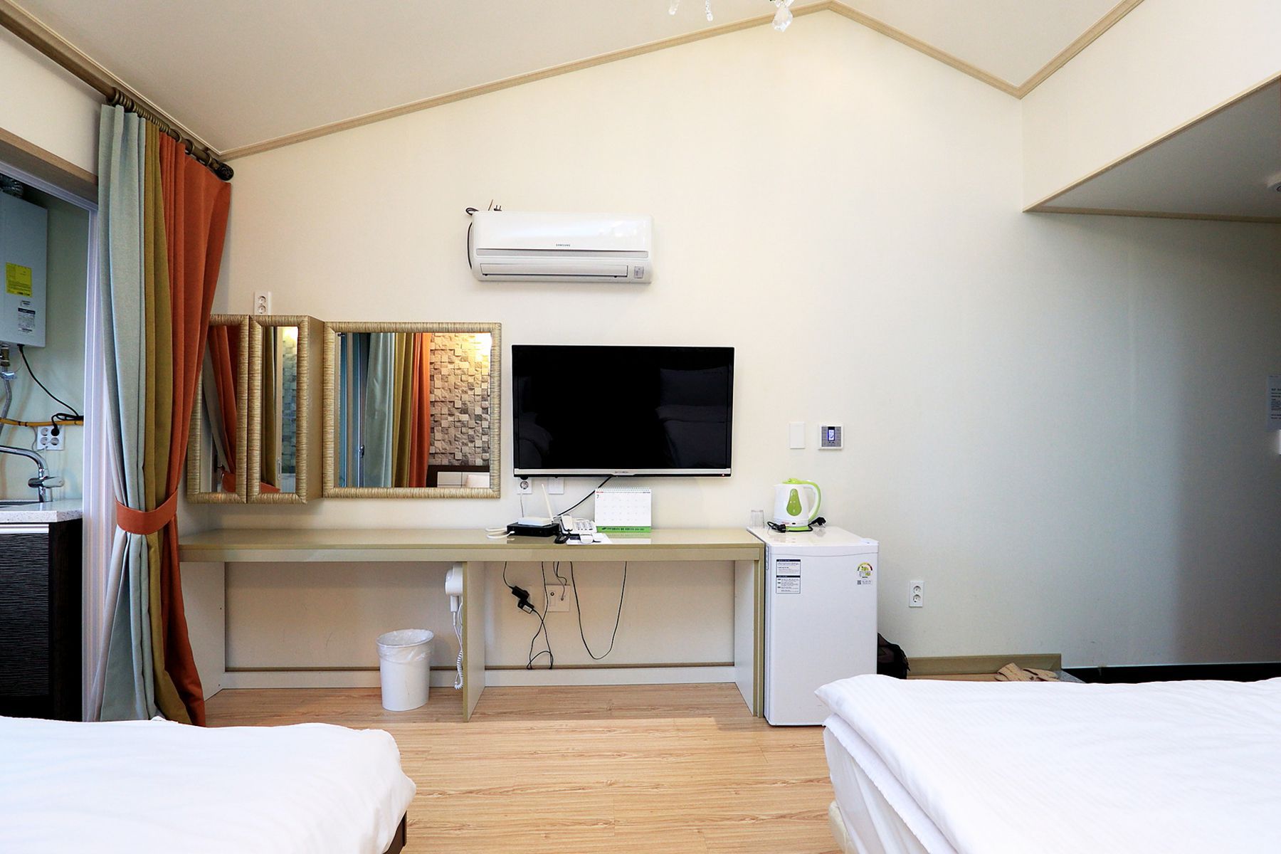 객실내에 필요한 가전 및 물품들이 모두 구비되어 있고 밝고 깨끗해서 쾌적하게 이용하실 수 있습니다.