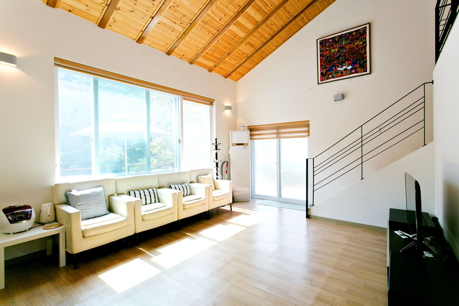 다른 펜션의 복층과 달리 계단이 위험하게 꾸며져 있지 않아서