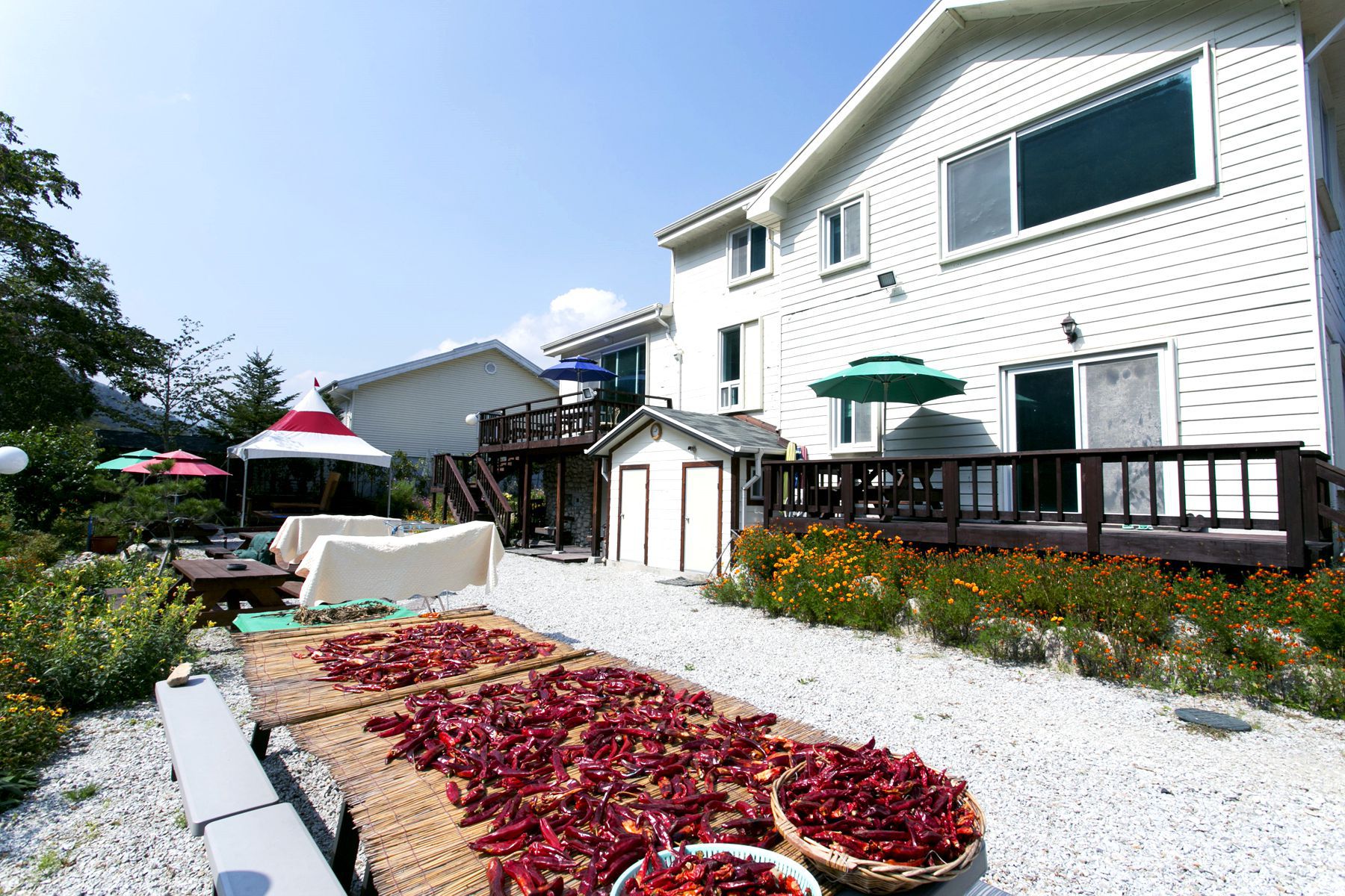 펜션 사장님의 친절함과 후한인심으로 직접 밭에서 기른 상추,고추등 채소들을 무한으로 제공받을 수 있는