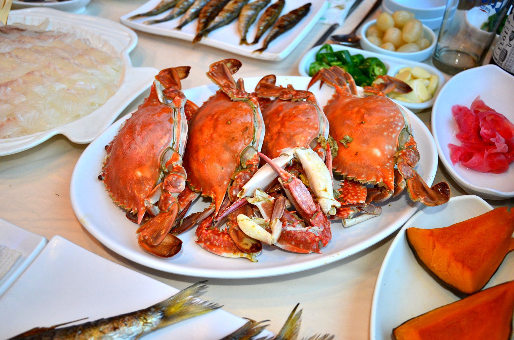 꽃게탕이나 매운탕을 같이 드시면 스키다시가 차려져 식사로 즐기시기에도 무리가 없습니다.