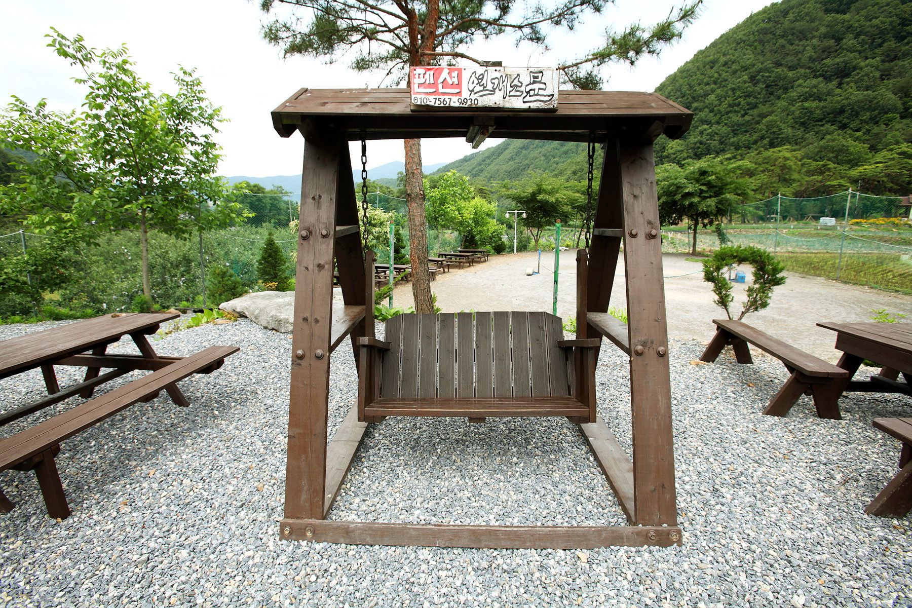 사계절 아름다운 '연개소문펜션'은 족구,농구,배드민턴,배구,그네등 다양한 즐길거리가