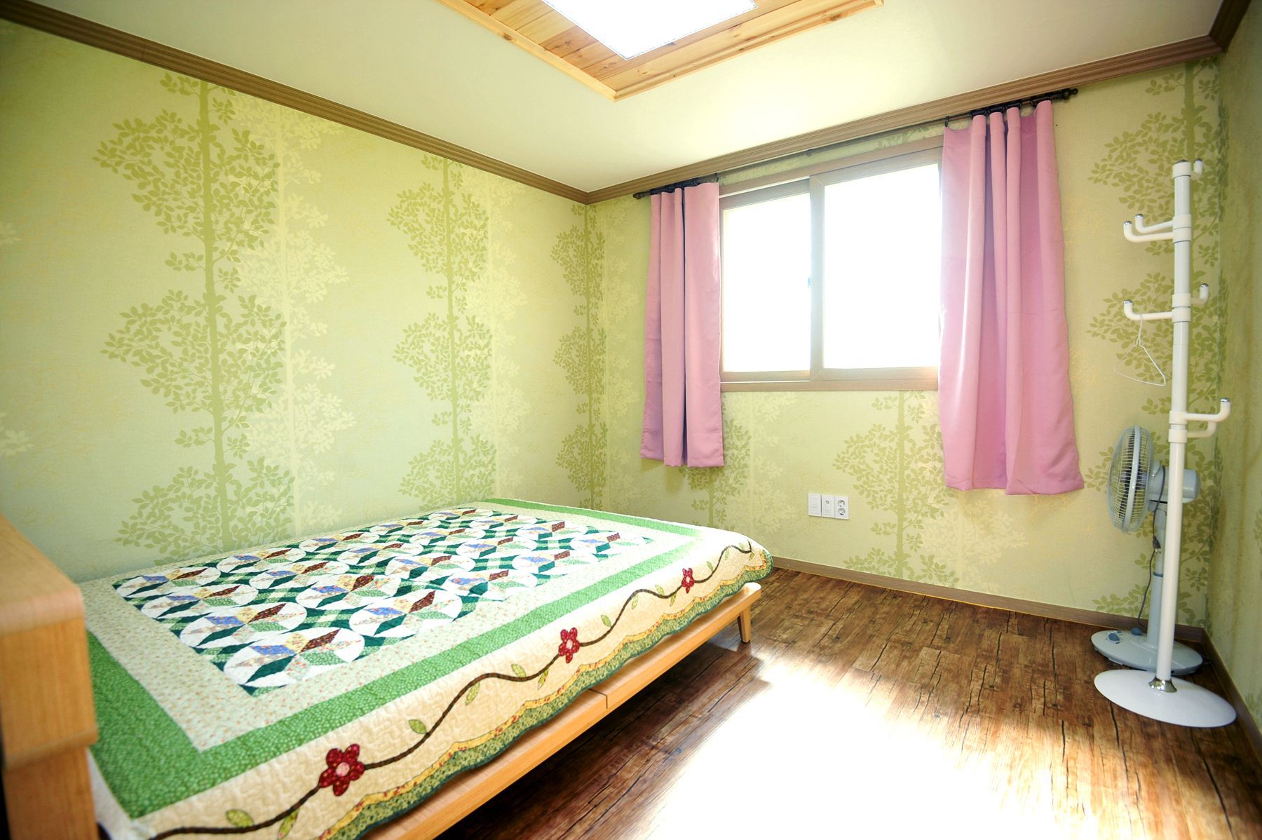 따뜻한 볕이 들어 포근함이 느껴지는 침실은 폭신폭신한 침대에 깔끔한 침구류가 셋팅되어 있어 기분좋게 사용할 수 있습니다.