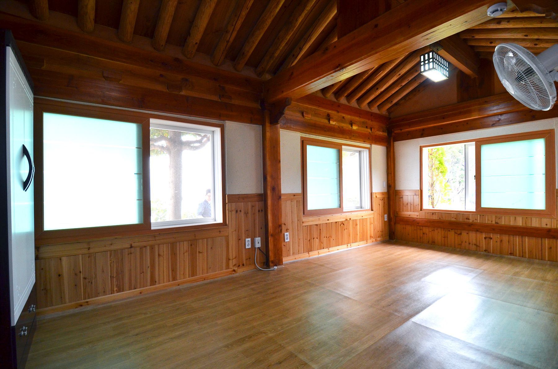 편백나무와 육송, 그리고 황토로 지어진 한옥의 객실이라 은은한 편백나무 향이 살아있으며