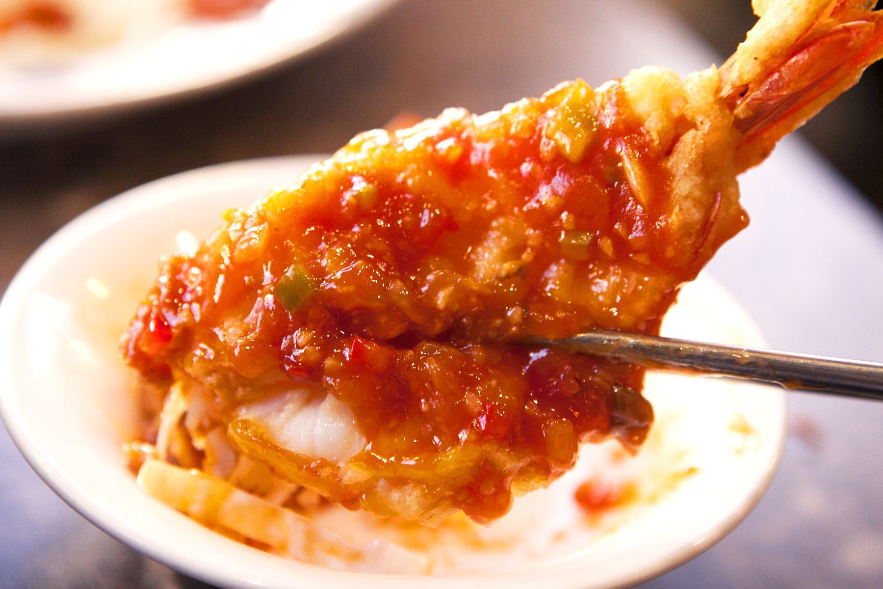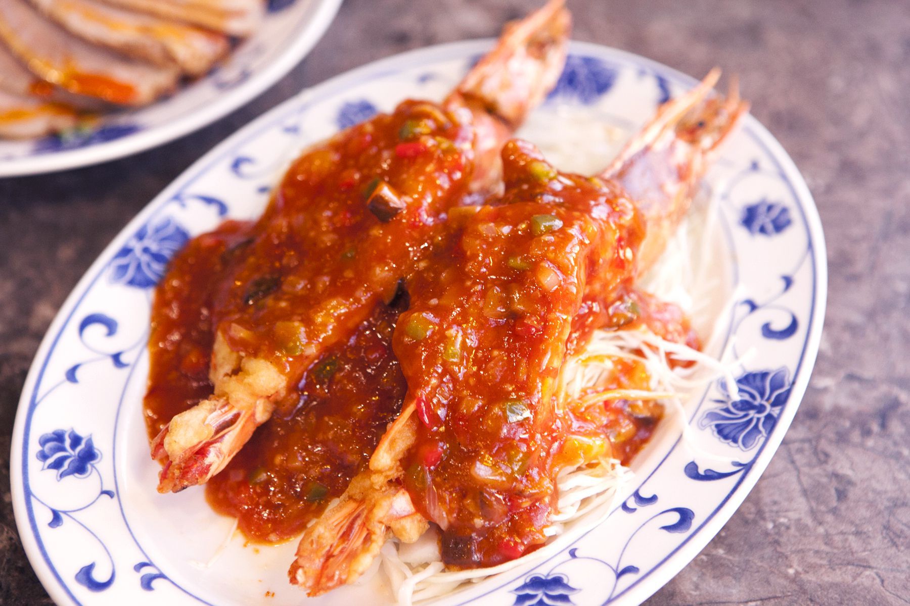 새우보다 크기도 클뿐만아니라 오동통한 살로 가득찬 대하를 이용한 산동주방의 깐쇼대하는
