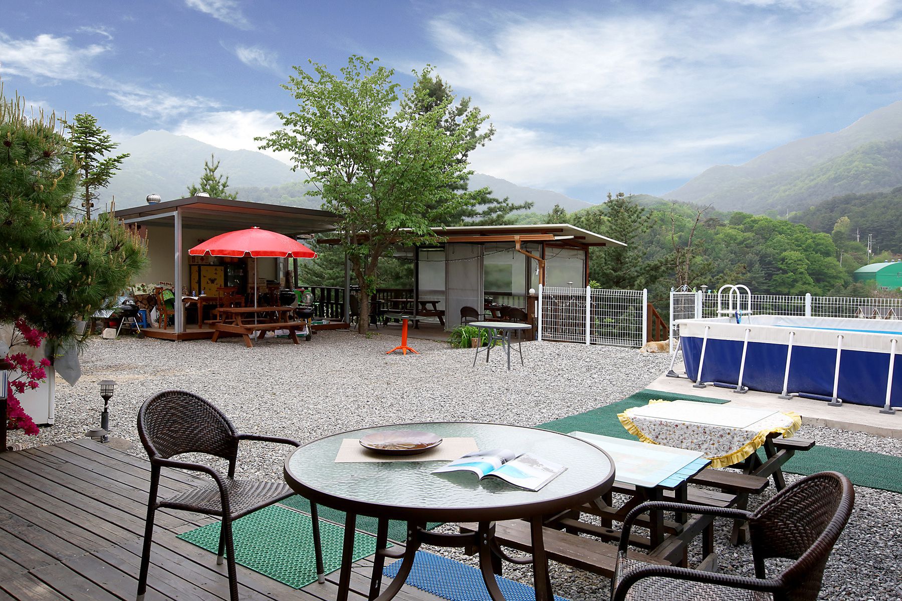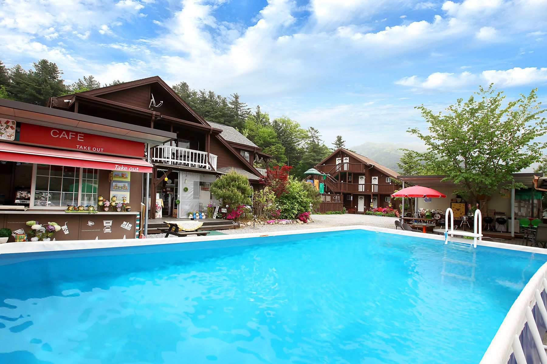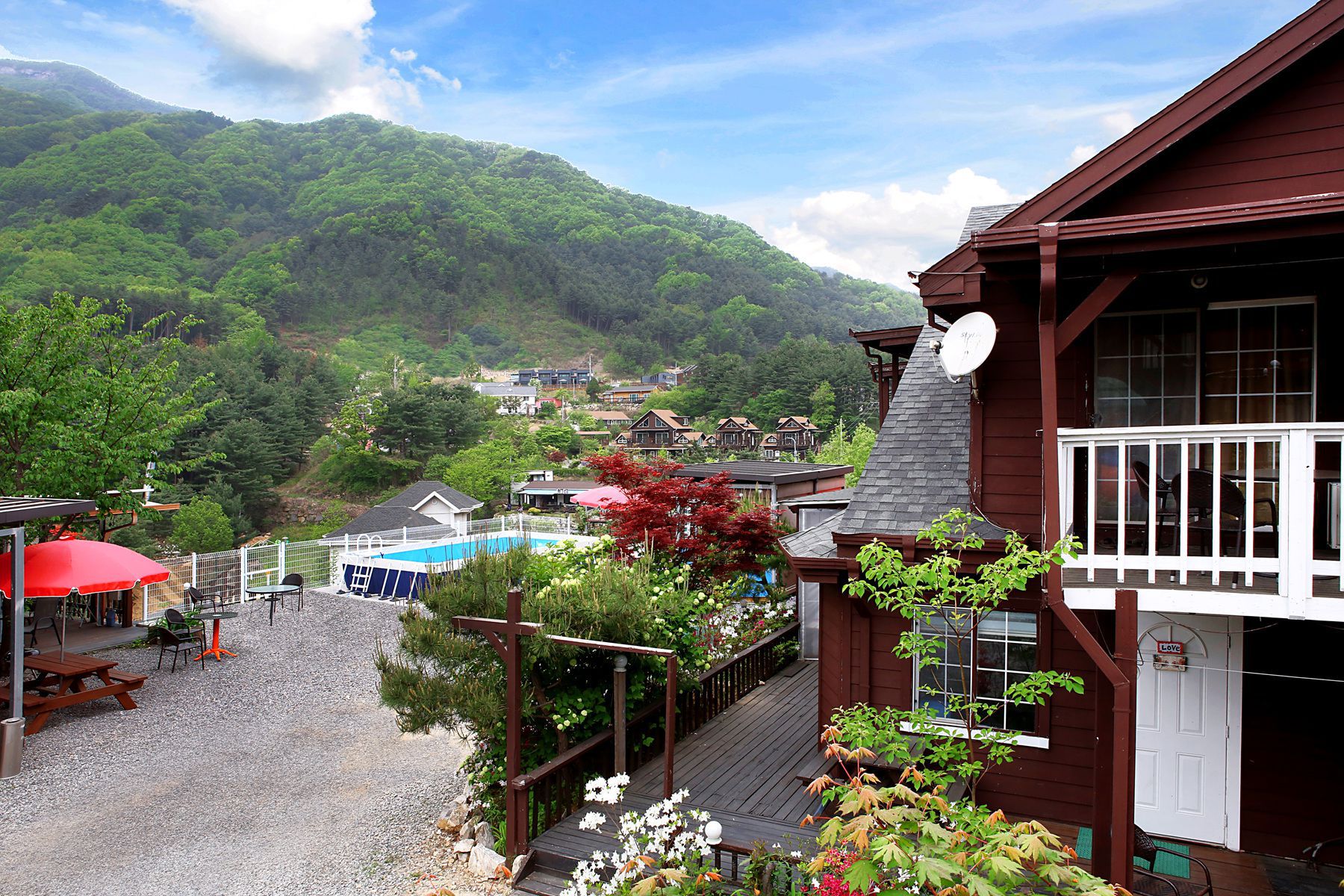 가까이 계곡이 있으며 펜션내에 수영장도 마련되어 있어 여름이면 시원하게 물놀이를 즐기실 수 있으며
