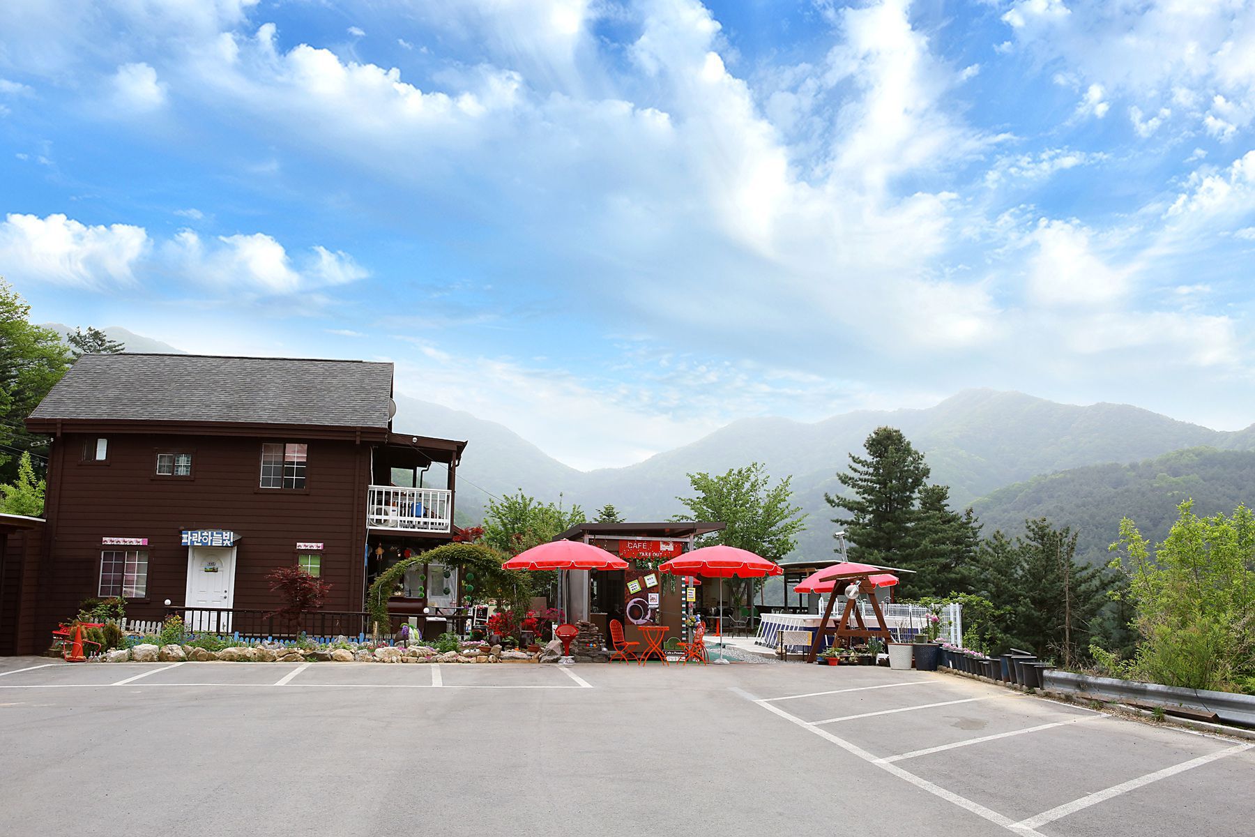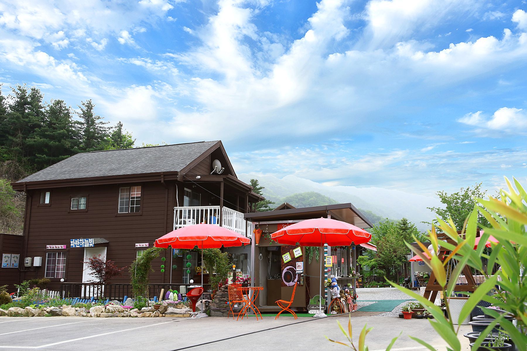 낮에는 눈앞에 펼쳐지는 자연을 벗삼고 밤이면 밤하늘을 수놓은 별을 벗삼아 힐링을 즐길 수 있는 '파란하늘빛펜션'입니다.